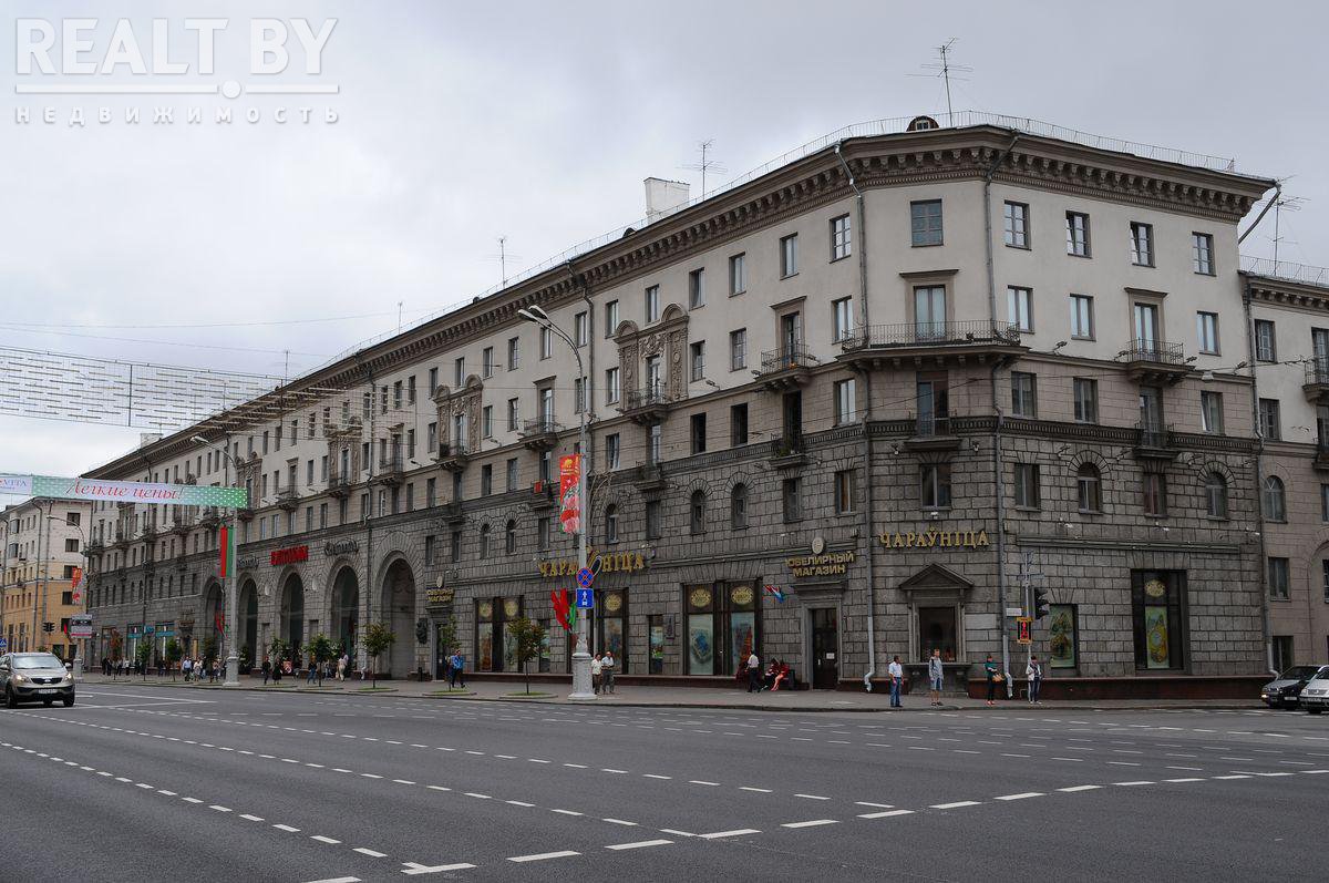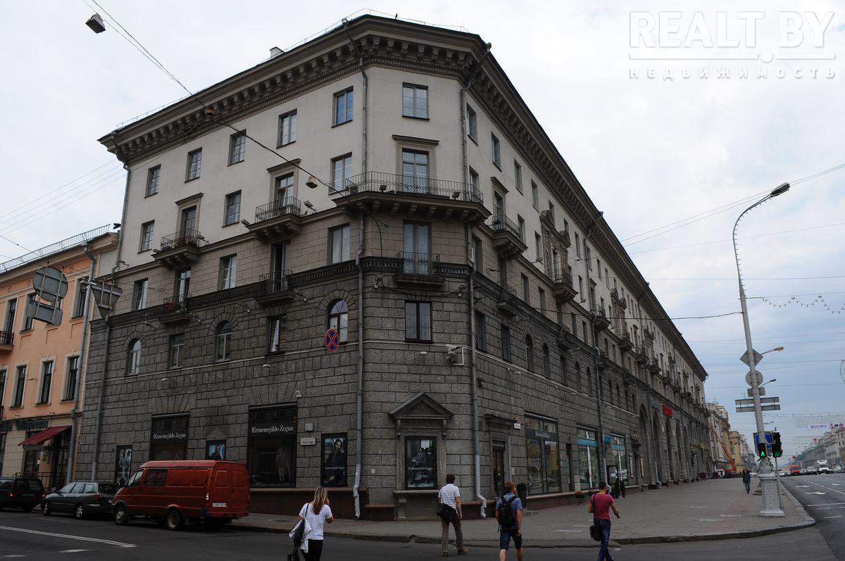 Пятиэтажный дом на проспекте Независимости, 13 занял место трехэтажного особняка минского градоначальника Кароля Чапского. Его дом простоял 55 лет, был снесен в 1949-м. Сталинка появилась тут спустя 5 года. Кстати, проектом занимались Михаил Осмоловский и Геннадий Баданов.