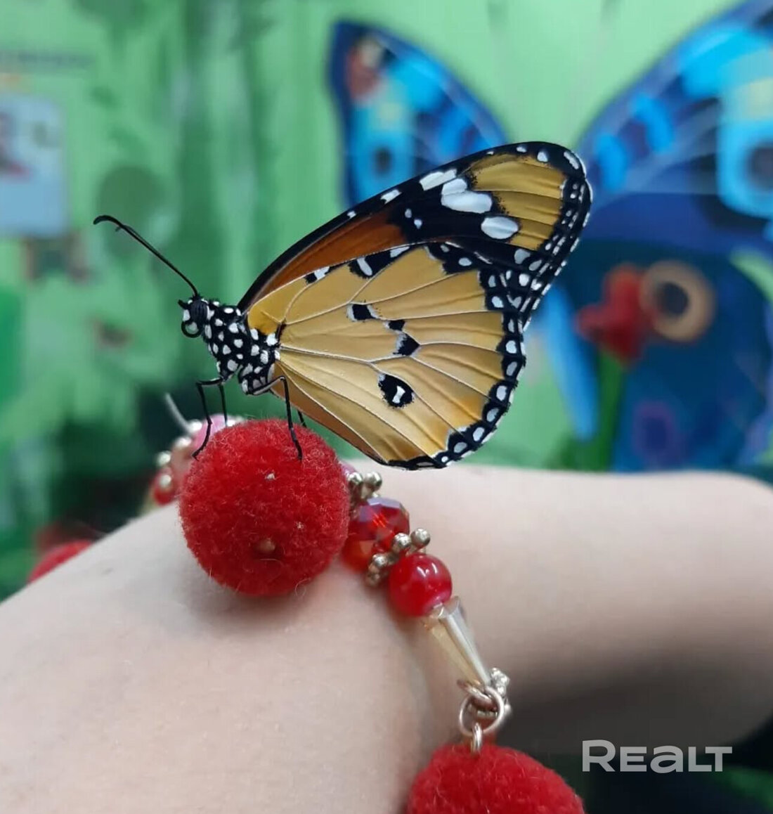 В объявлении отмечается, что в помещении организовано круглогодичное проведение выставок живых экзотических бабочек необычных расцветок и размеров со всех уголков мира. Посетители могут наблюдать наиболее интересные моменты жизненного цикла бабочек: рождение из куколки, кормление, а также делать незабываемые фото/видео. Кстати, еженедельно видовой состав выставки меняется на 25−40%.