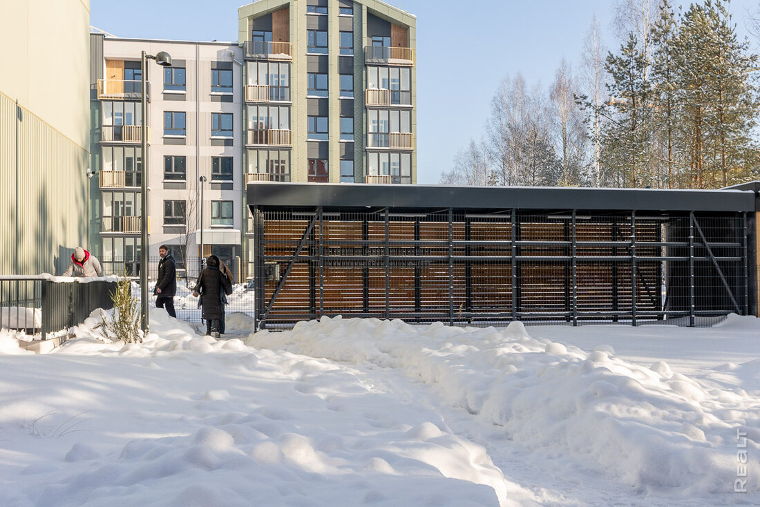 Рядом с домом расположился паркинг для автомобилей. Место в нем можно приобрести только с покупкой квартиры. Так, евротрешка с машино-местом обойдется в 125 тысяч долларов, без паркинга — 119 900 долларов. Что касается общественного транспорта, то пока отсюда до Минска ходит только маршрутка.