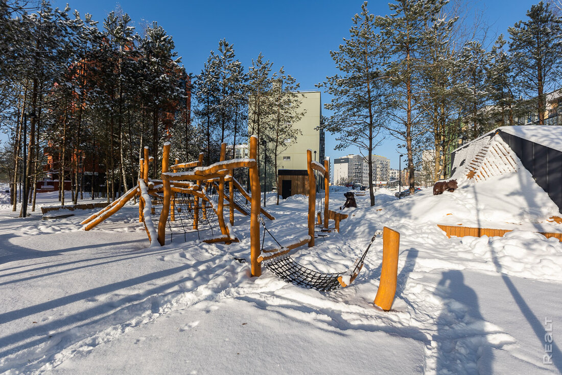Кроме того, застройщиком учтены интересы любых возрастных категорий. Во дворе есть детская площадка, рассчитанная на детей от года до 12 лет, а также территория для взрослых — беседки, зона с мангалами, которую можно бронировать на определенное время. Такая же мангал-зона есть и на общей территории, недалеко от офиса продаж. Продумана во дворе и зона для собак, боксы для хранения велосипедов, территории для вело- и пеших прогулок