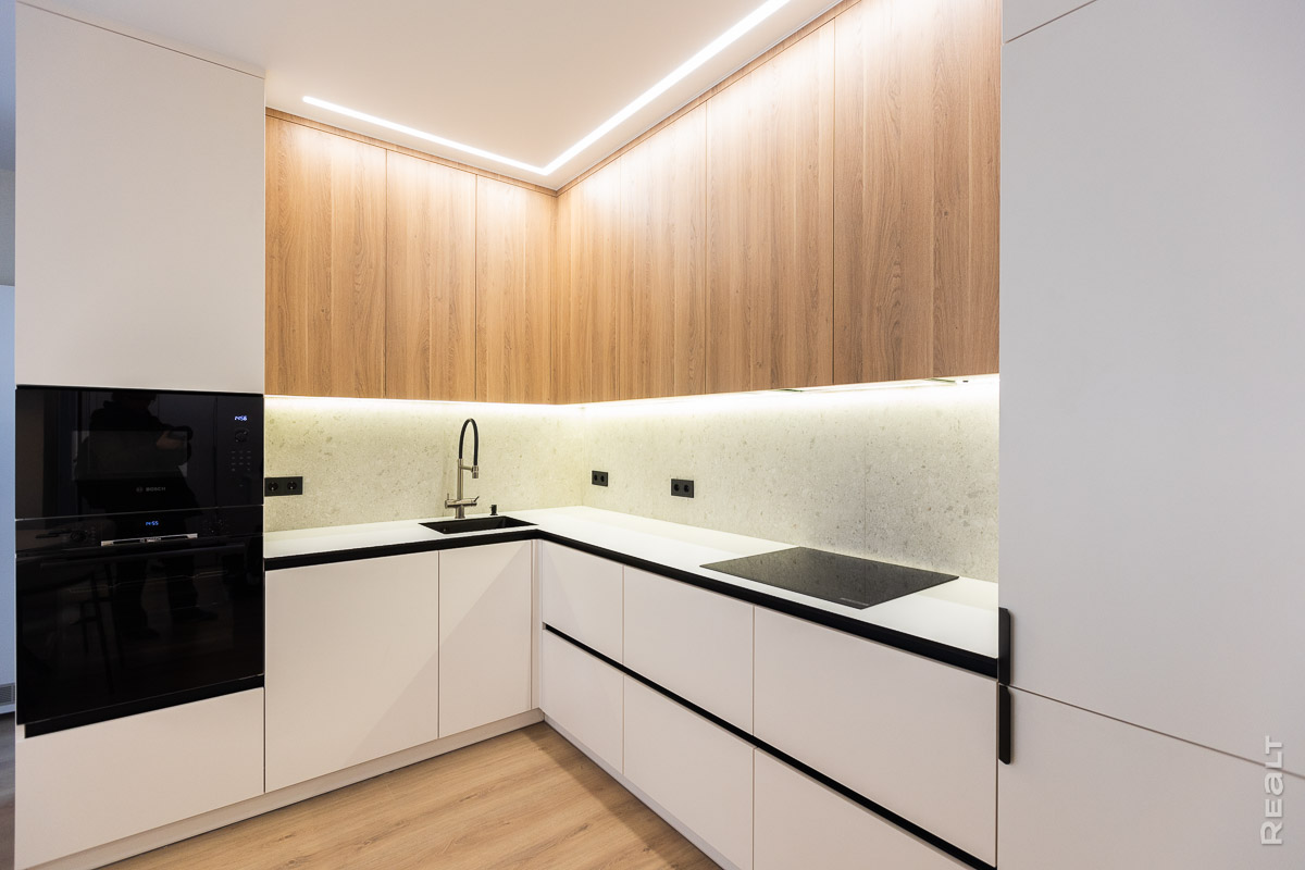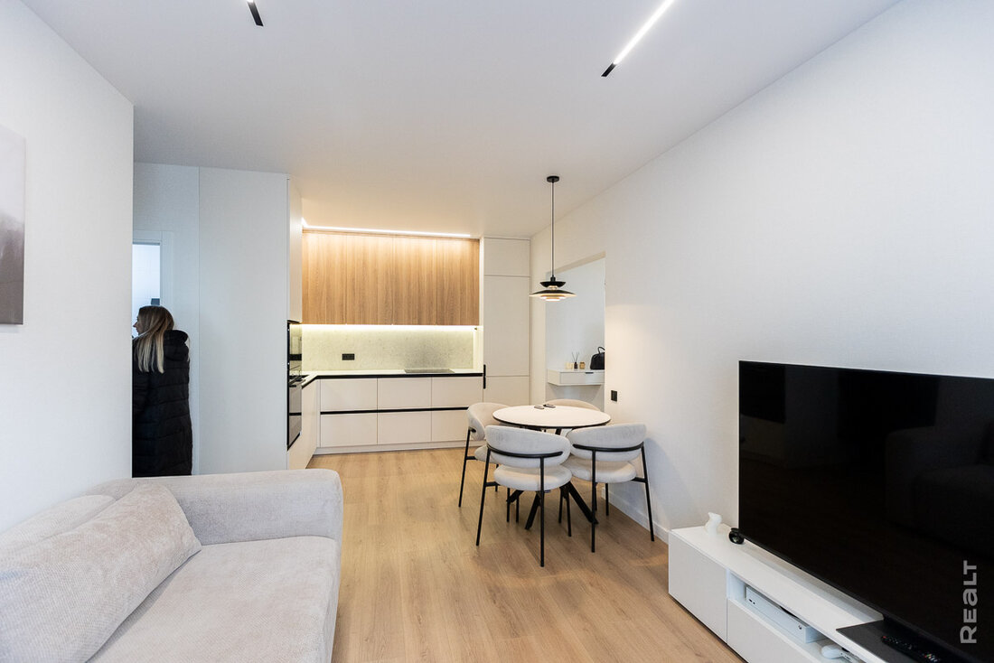 Кухня в квартире объединена с гостиной — это популярное решение для создания единого функционального пространства. «Такие планировки начали делать из-за того, что людям хотелось чувствовать себя ближе к семье, проводить приятно время вместе за одним столом. В маленьких кухнях это делать некомфортно, поэтому было придумано такое решение. Хотя вот со временем появляется и другая тенденция. Многие отмечают, что им некомфортно из-за обилия запахов, но в этом случае всегда есть решение — вытяжка», — отмечает агент по недвижимости Дарья.