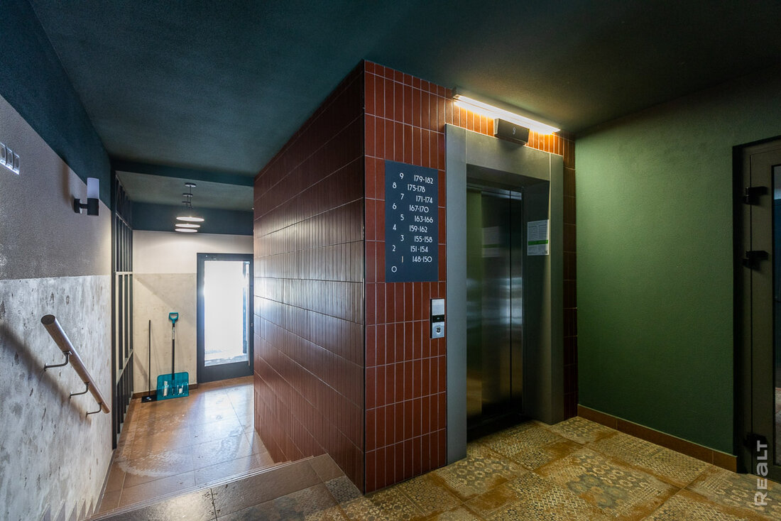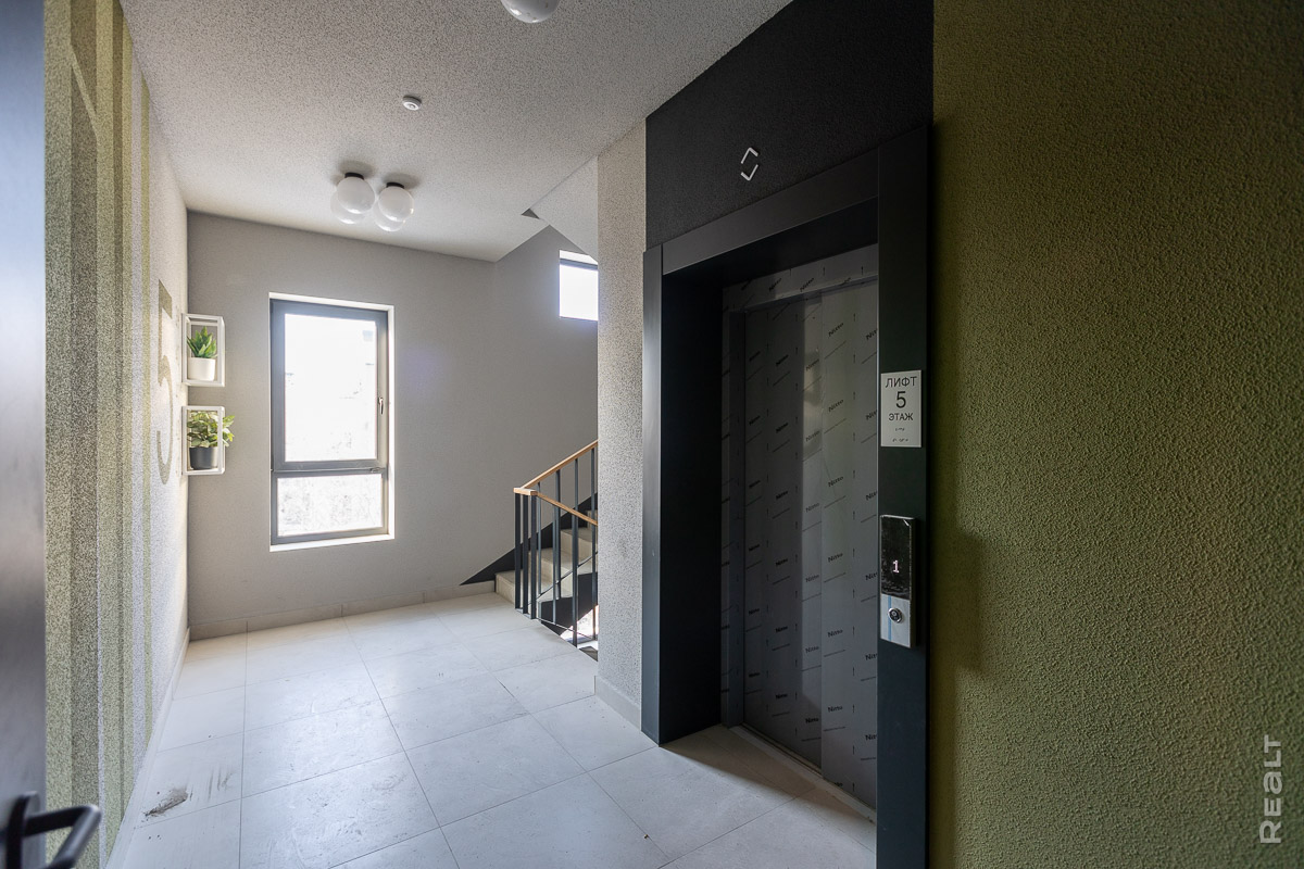 Подъезд в рассматриваемом доме сквозной с выходом на две стороны. Причем со двора предусмотрен безбарьерный режим, чтобы родители с колясками и люди с ограниченным возможностями могли спокойно заезжать. Лифт здесь один, но открывается на две стороны.