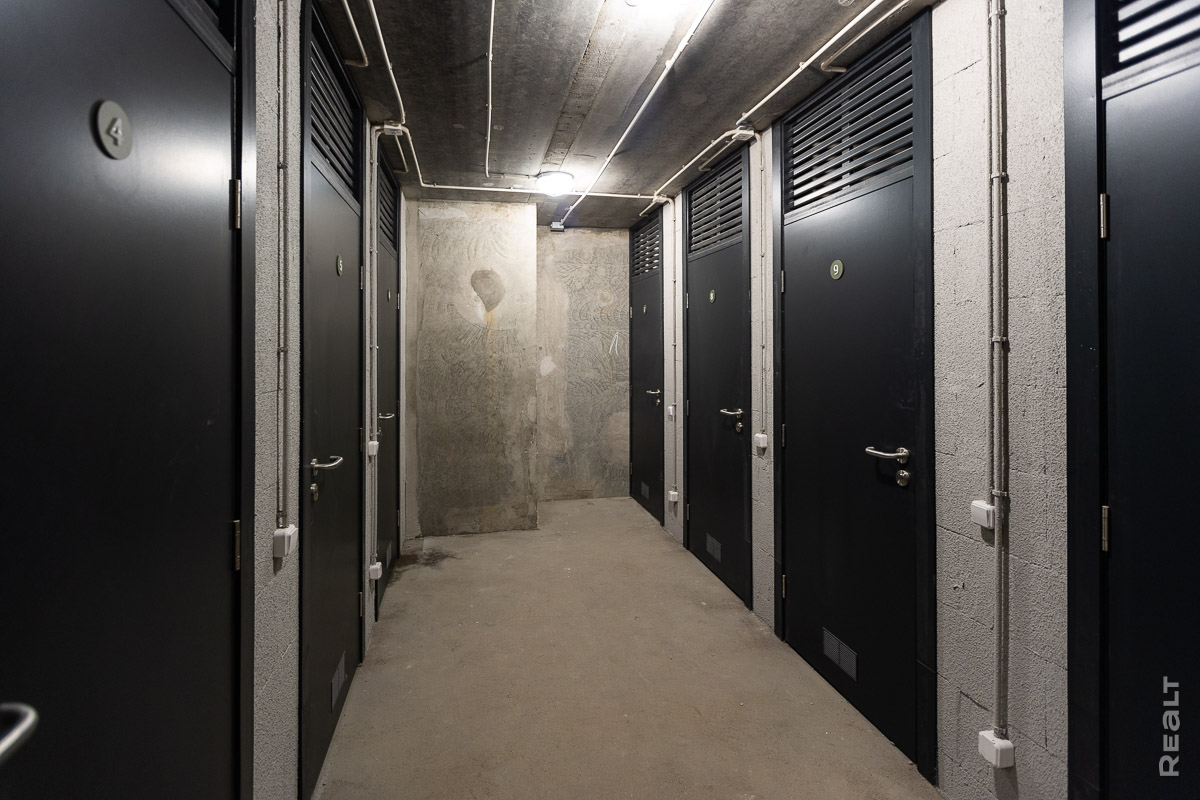 В подвальном помещении расположены кладовки, предусмотренные для каждой квартиры, общей площадью по 3,43 квадрата. Их можно использовать как дополнительные места для хранения необходимого.