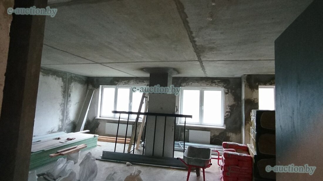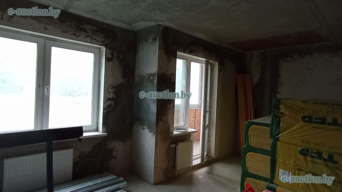 Общая площадь двушки — 64 квадрата. Квартира продается без отделки. Должником числится «Минский домостроительный комбинат».