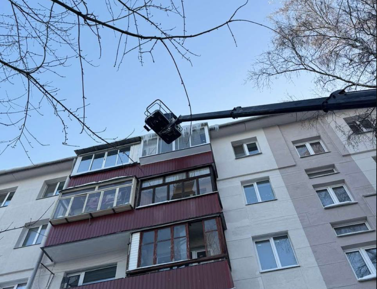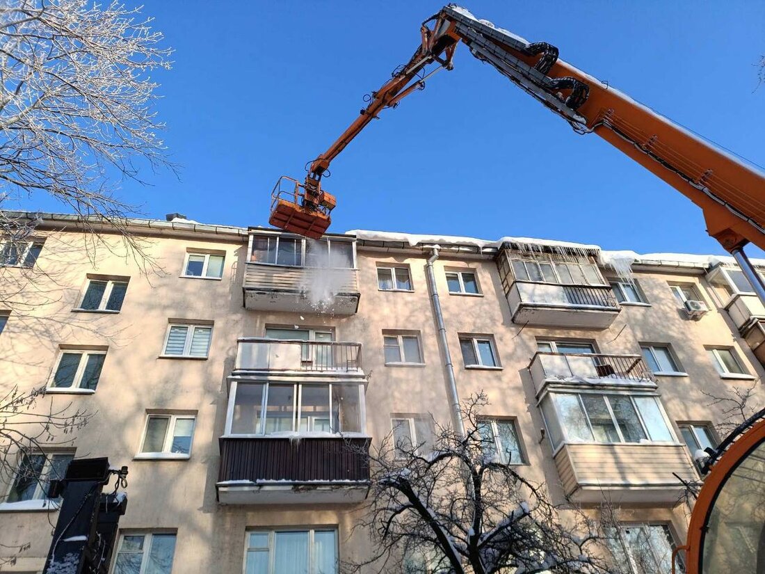 Коммунальщики показали, как убирают снег с крыш жилых домов. Вот фото