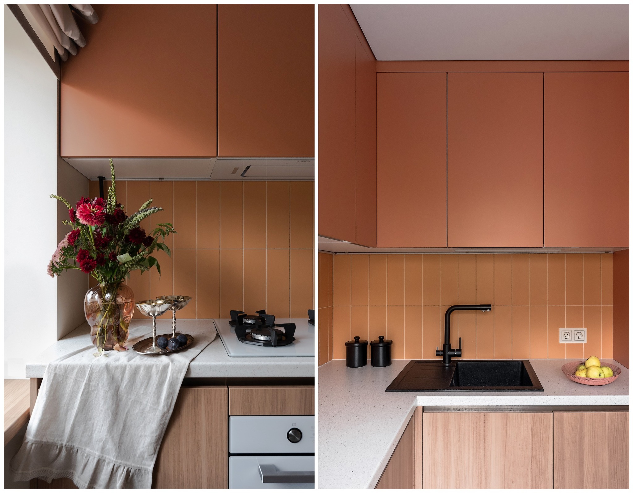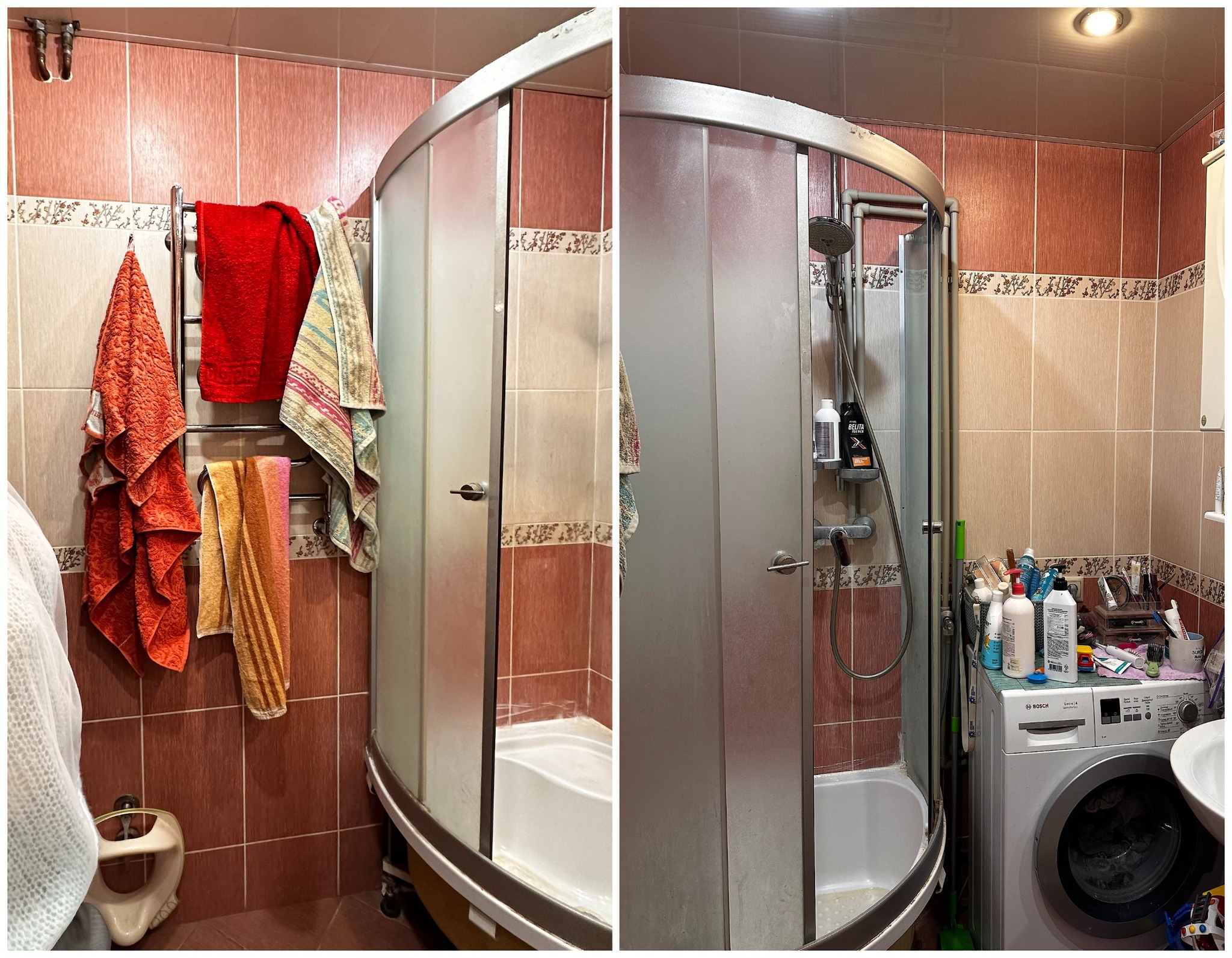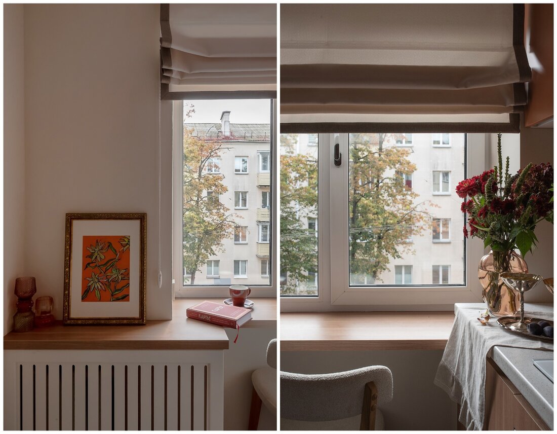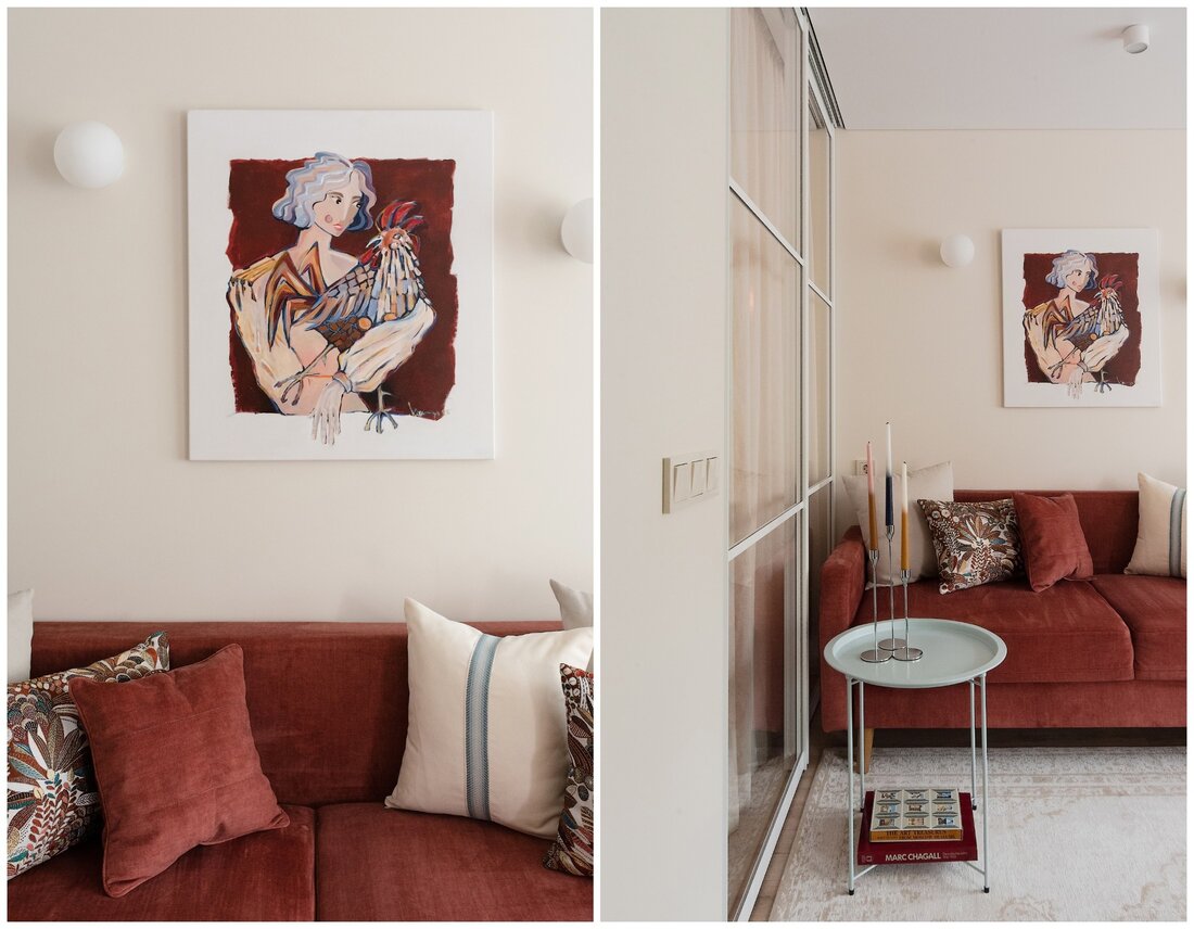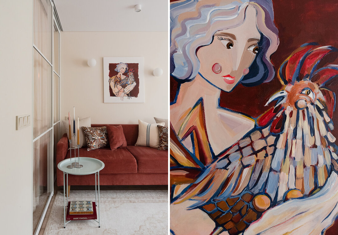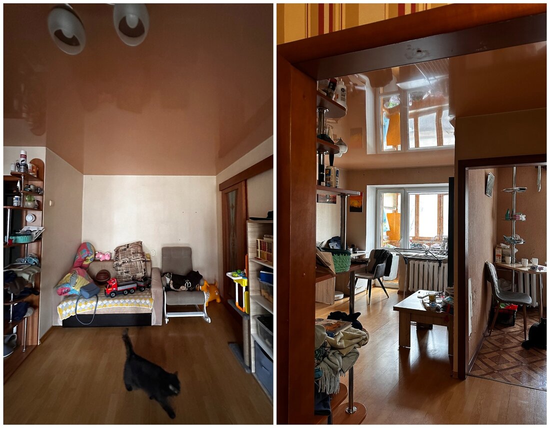 — Как и говорили выше, санузел потерпел полную трансформацию. Изначально вход располагался со стороны прихожей, из-за чего двери постоянно сталкивались друг с другом. Внутри не было места для хранения, душевая кабина протекала и совершенно не подходила для семьи с маленьким ребенком. Теперь тут имеются подвесной унитаз, полноценный умывальник и ванна. Узел с умывальником оказался самым технически сложным. Роль играли миллиметры, поэтому раковину изготавливали на заказ.