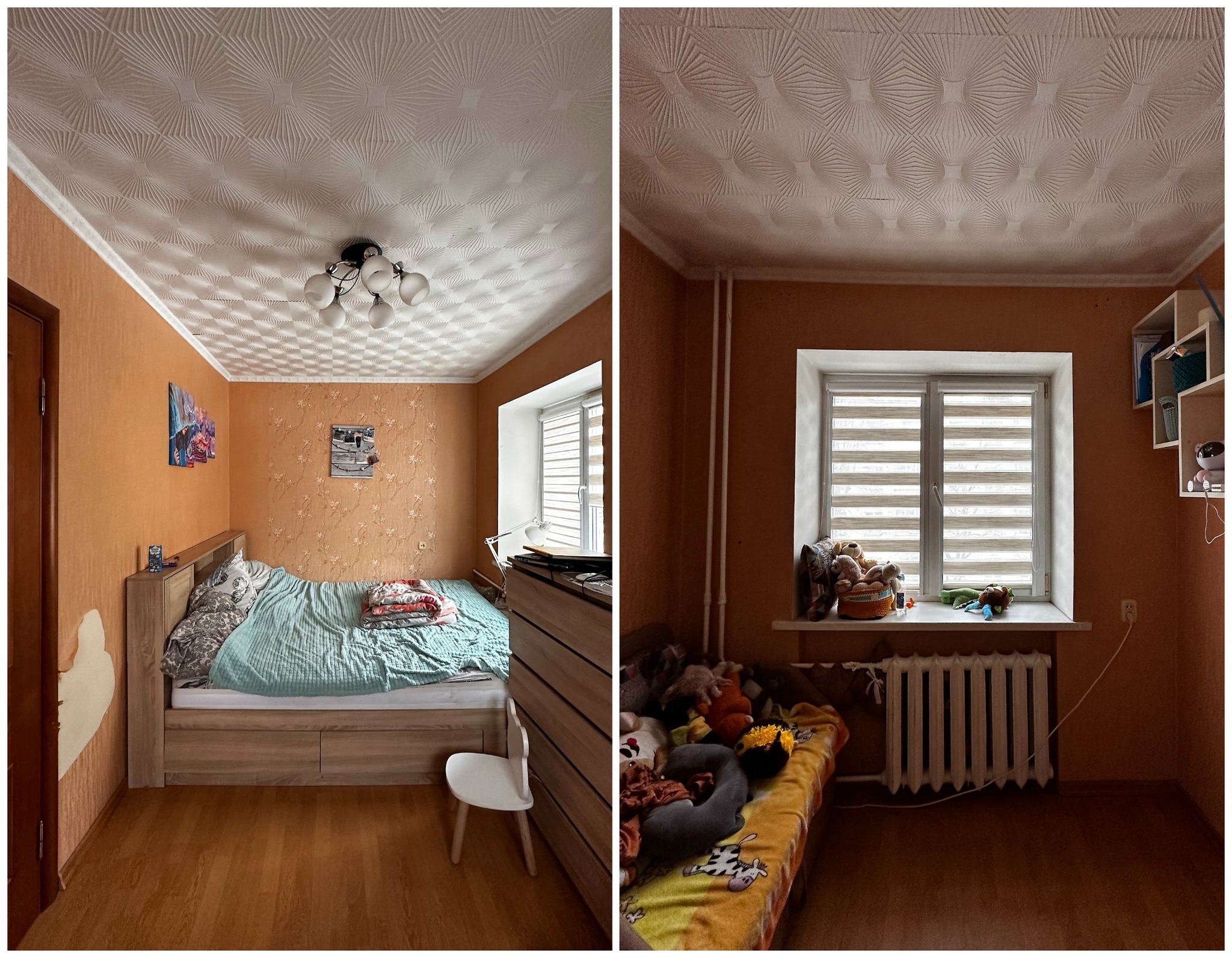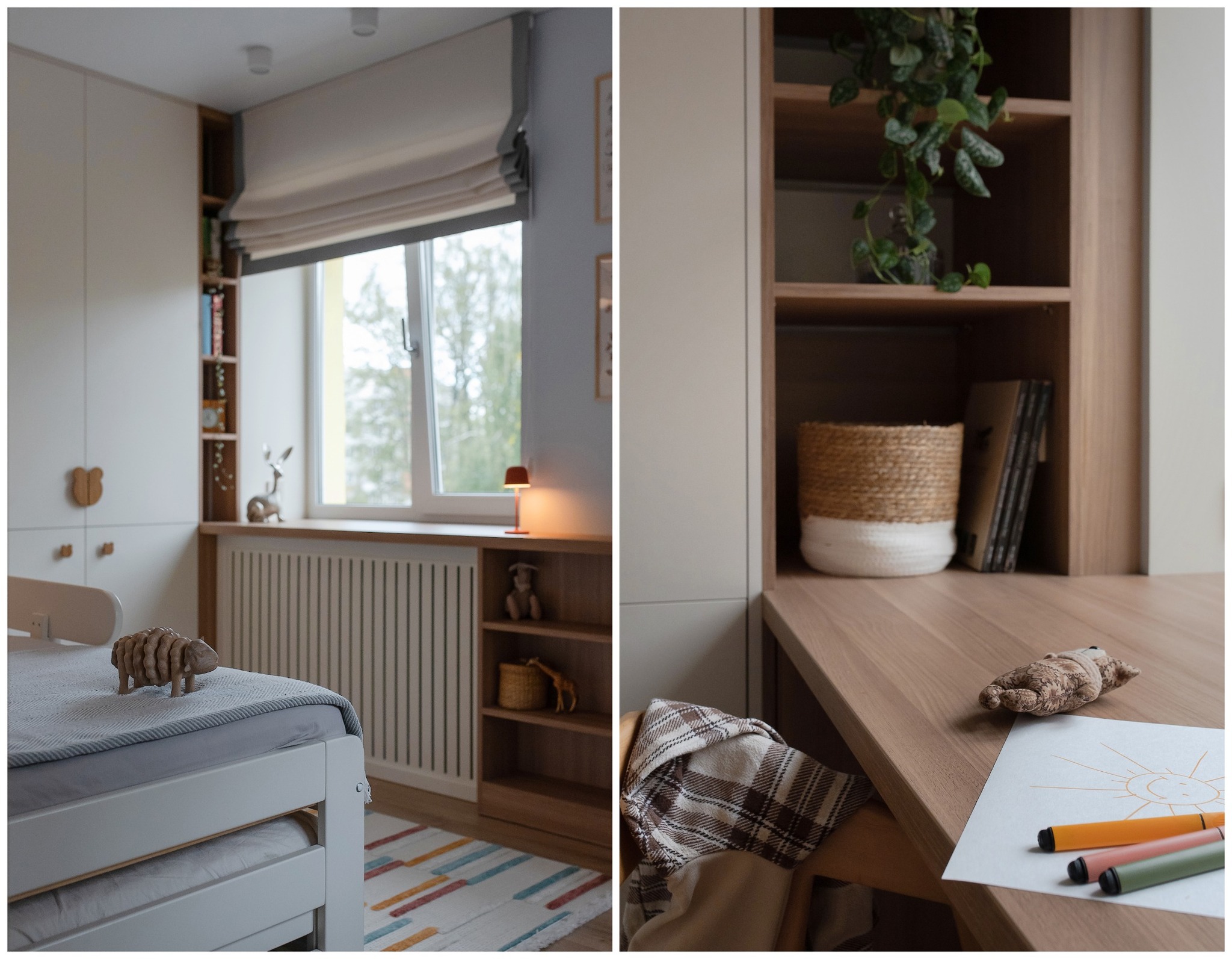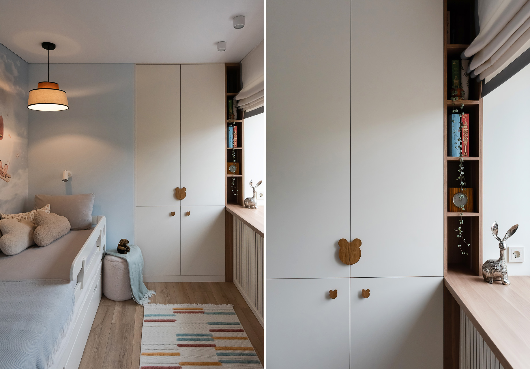 В детской тоже есть фреска. На этот раз использовали бесшовные обои от белорусского производителя Vinni.by. Рисунок ребенок выбирал сам.