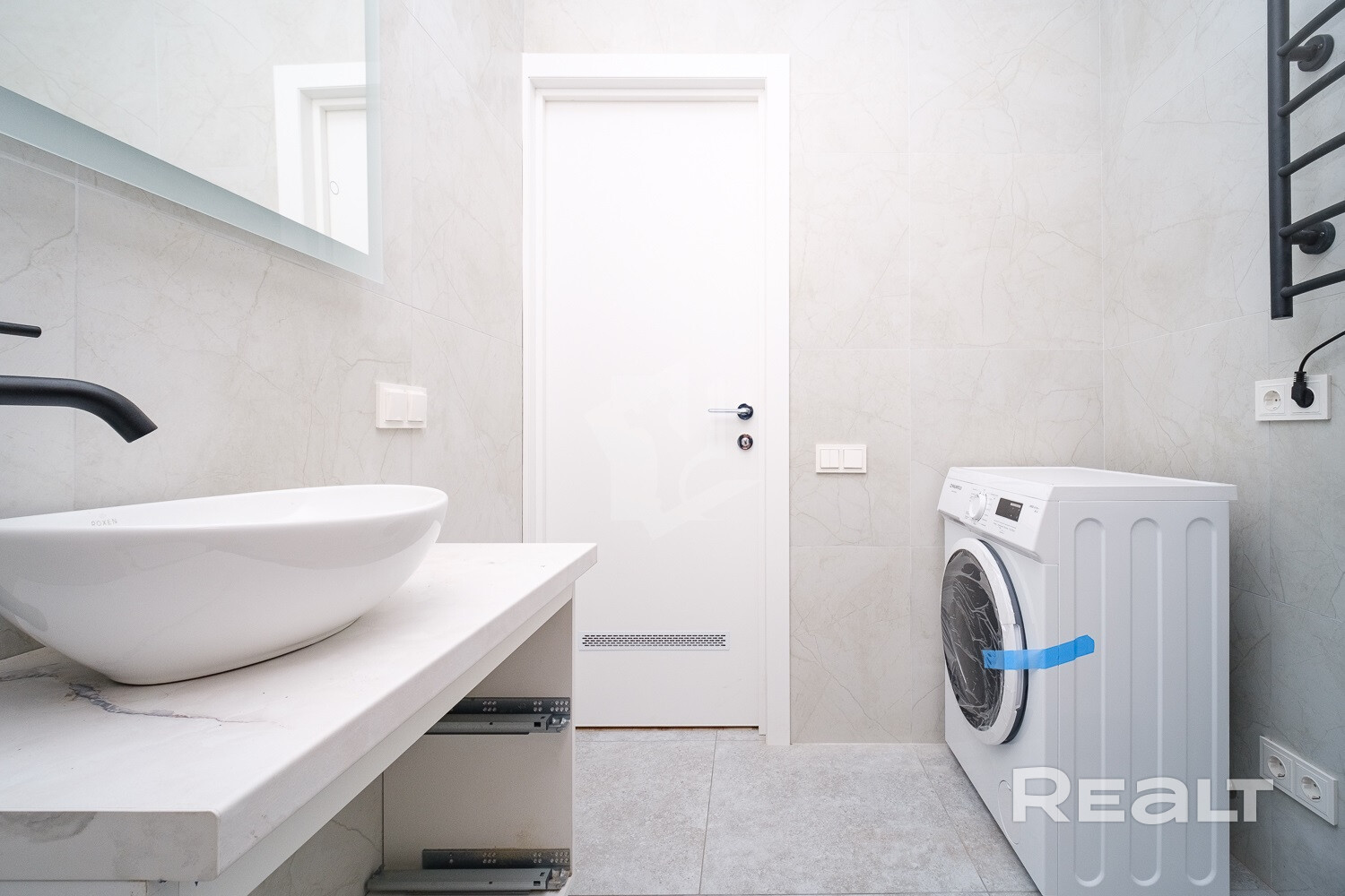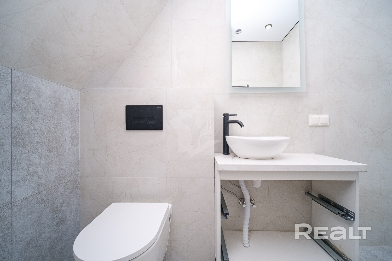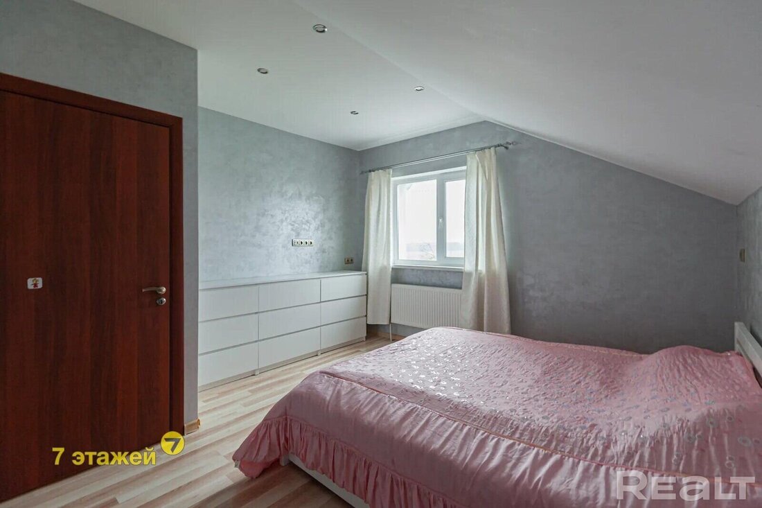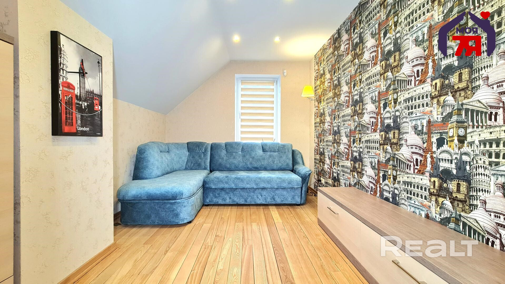 Общая площадь — 84,7 м2. Внутри гостиная-кухня, спальня, санузелы. Под самой крышей — спальное место. Имеется вся необходимая мебель и техника.