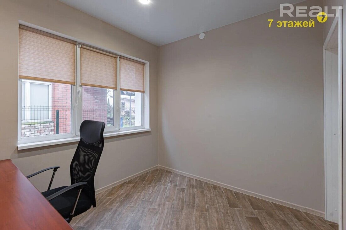Здесь продается двухэтажный дом 2016 года из газосиликатных блоков. Общая площадь – 119,6 м2. Планировка первого этажа такая: гостиная-кухня, кабинет, санузел, веранда.
