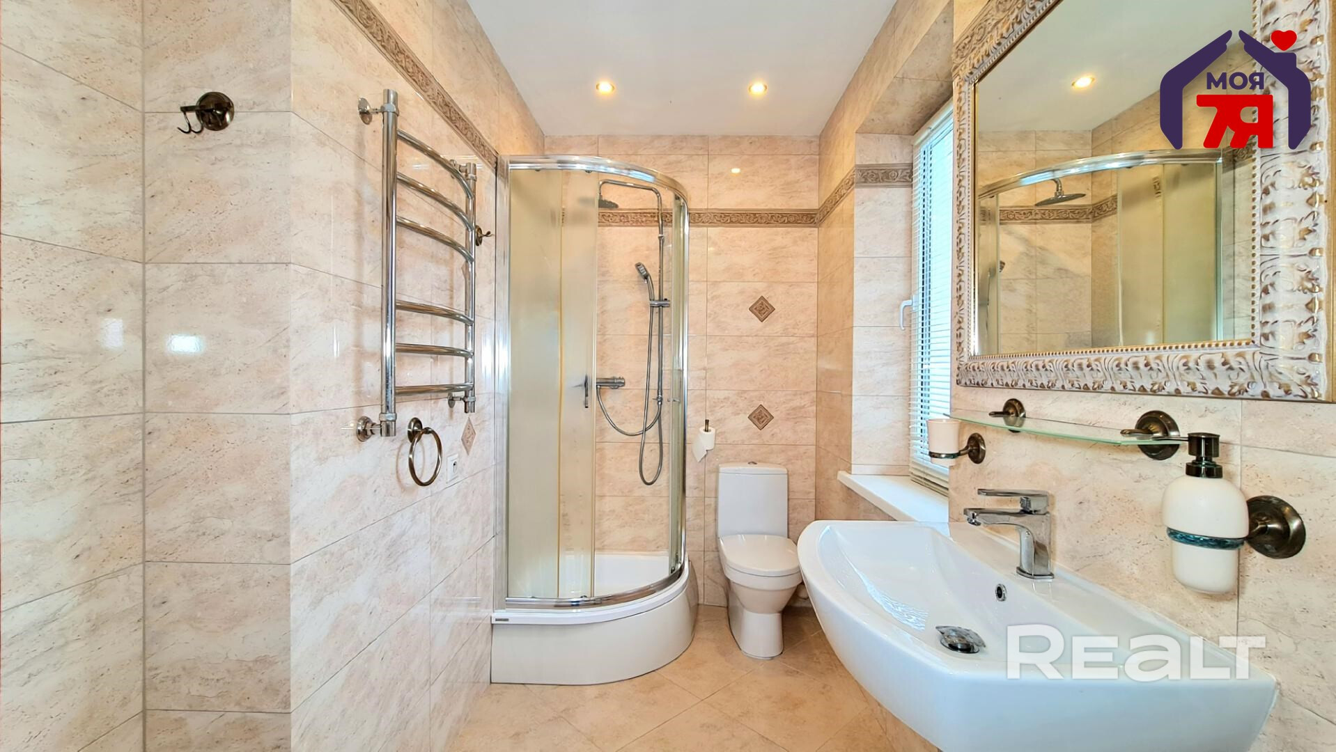 Отапливается дом двумя кондиционерами, в санузлах — теплые полы. Вода из скважины, канализация местная.