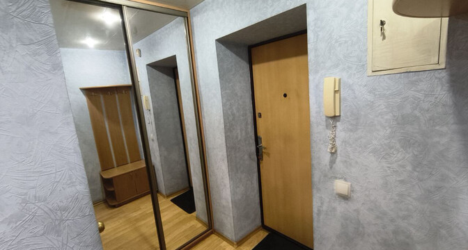 На последнем этаже пятиэтажного дома на Либкнехта, 92 1961 года постройки продается квартира. Ее площадь — 36,54 м², на кухню отведено 5,84 метра.