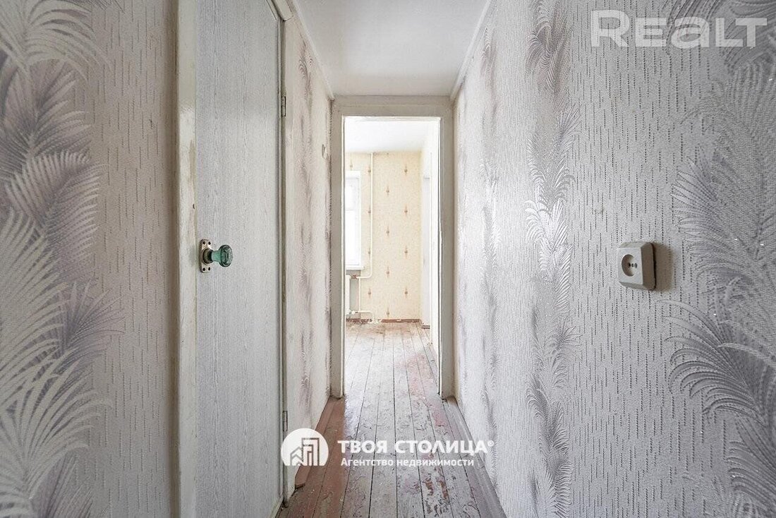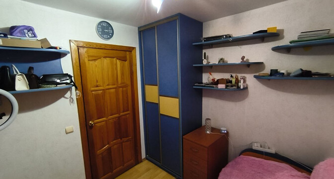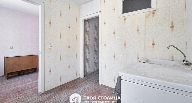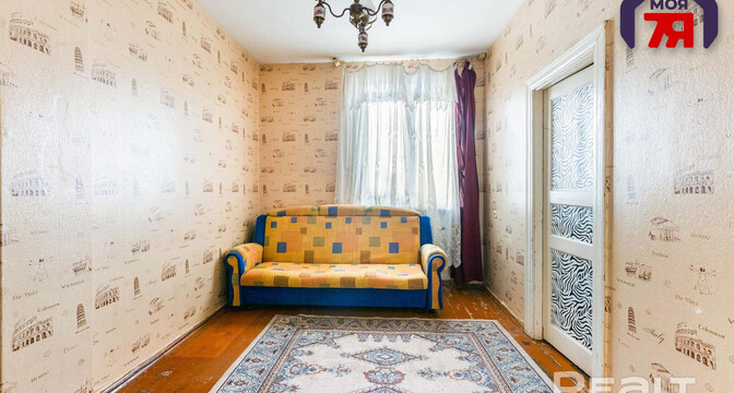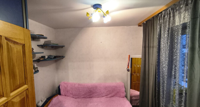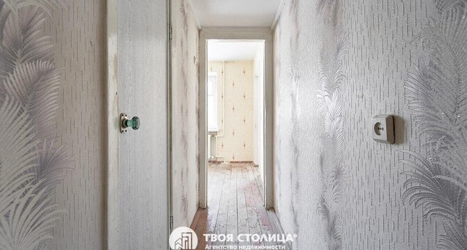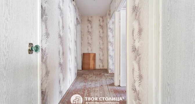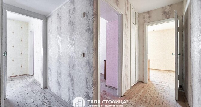 Жилье нуждается в ремонте. Пол устелен деревянными досками, на стенах — обои. В крайней комнате есть выход на балкон.