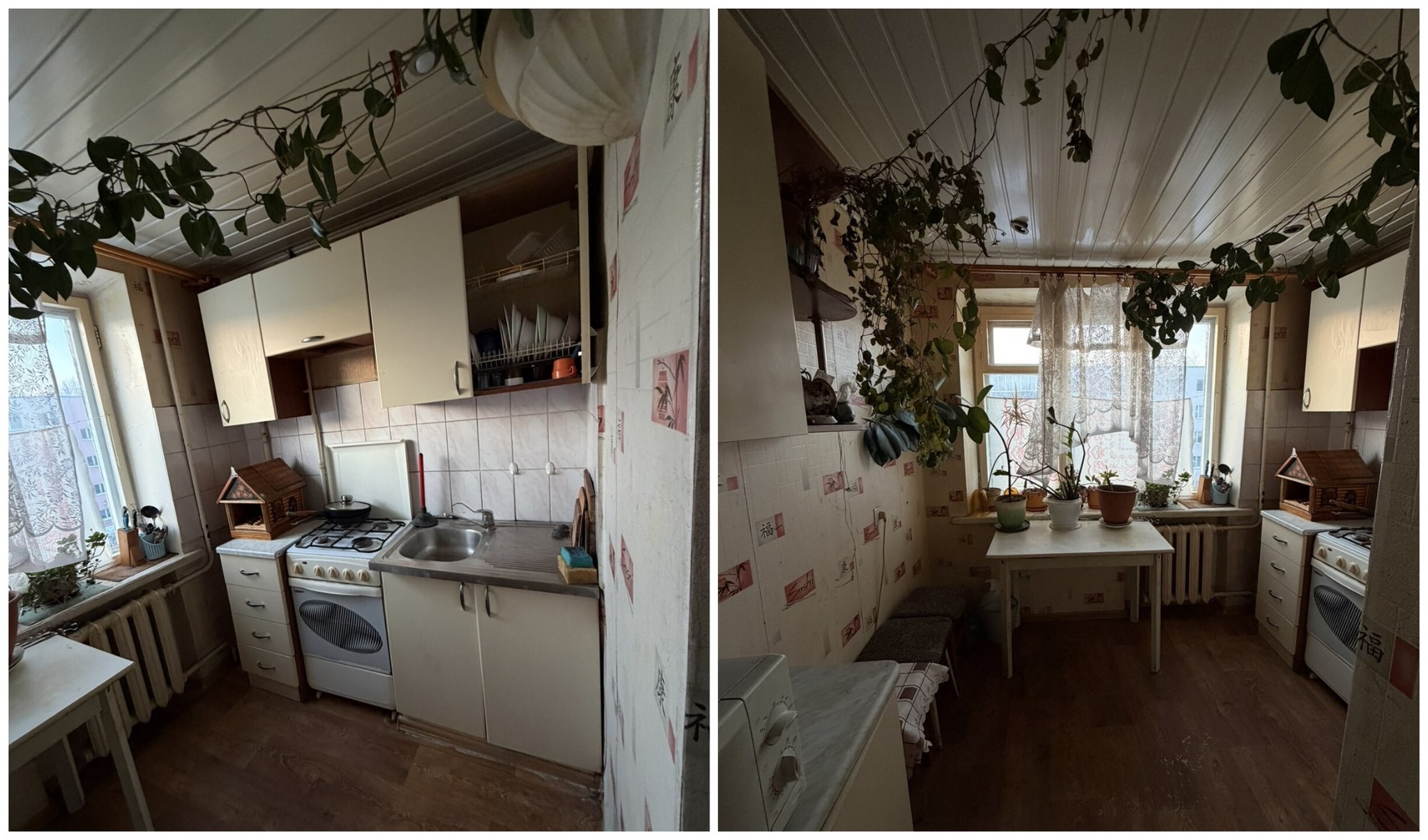 Последняя квартира в подборке прописана по адресу Розы Люксембург, 152 в двухэтажном доме 1961 года. Она расположена на втором уровне и занимает 30,5 м². На кухню приходится 4,6 метра.