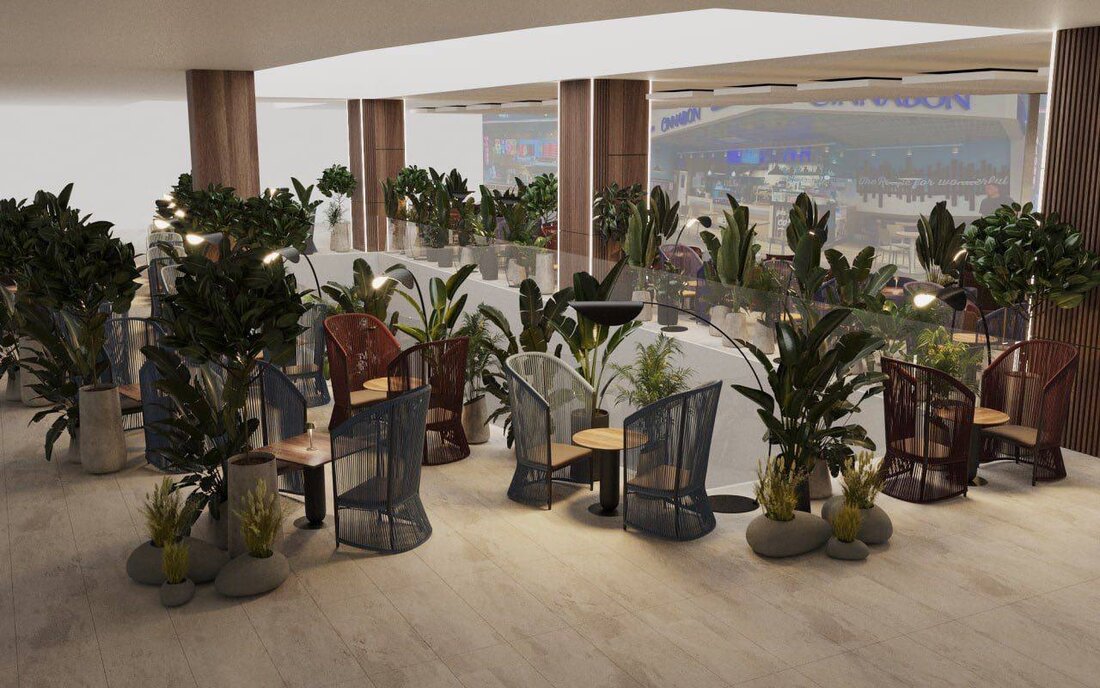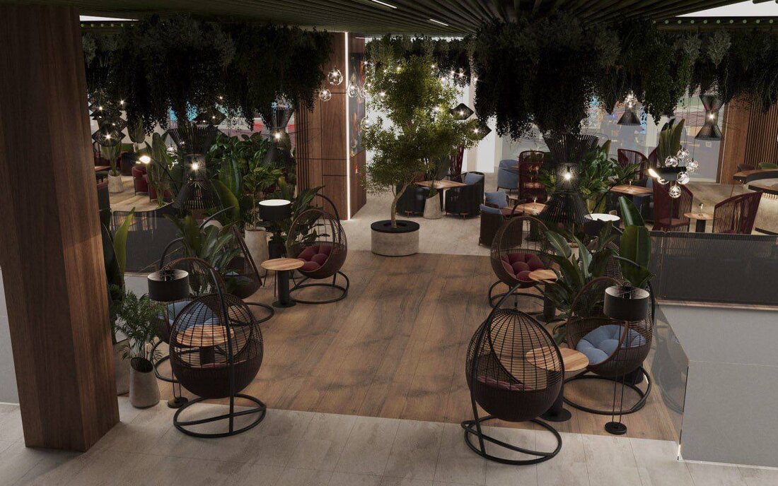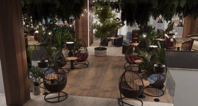 Новый фудхолл откроется на третьем этаже ТРЦ Palazzo, на месте привычного фудкорта. Обещают, что это будет новый для Беларуси формат. Интерьер обновят, мебель заменят, а сам зал расширят. Площадь фудхолла составит 1 700 квадратов. Большую его часть займут ресторанные столики, глубокие диваны и кресла. С потолка будут свисать 286 уникальных светильников сферической формы с атмосферным светом. Из необычного — круглый год между столами будут расти более 280 живых растений. От многолетников до карликовых деревьев и живых фитостен. Среди них будут и редкие виды, которые с трудом можно найти в Беларуси.