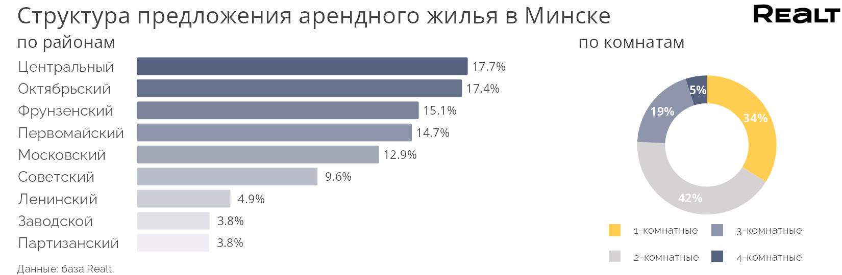 · Владельцам 1−2‑комнатных квартир можно не переживать: спрос стабилен. В самом сильно положении находятся квартиры-новостройки — даже при небольшом повышении цены арендаторы находятся быстро. Но в ряде локаций (например, «Минск Мир»), уже складывается ощущение точечного перегрева стоимостей.