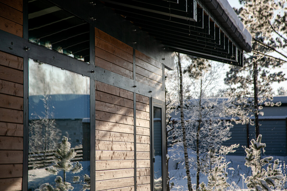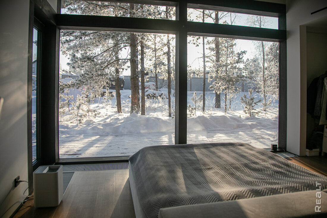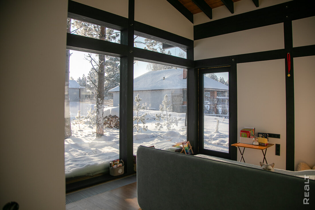 — У нас безрамным остеклением фахверков никто профессионально не занимается, — говорит он. — Ребята, которые могли бы это сделать, запросили 4,5 тысячи долларов, но их пришлось бы ждать. Поэтому пришлось самому вникнуть в тему, изучить кучу роликов, и самому заняться установкой. Без техники крупногабаритные тяжелые окна не установишь, поэтому нашел знакомого с манипулятором, купил вакуумные присоски, нанял трех подсобников. Первый пакет, конечно, ставили с большим волнением и дрожащими руками — все-таки это хоть и каленое, но стекло, нужно его было донести, не ударить, четко поставить. Весь процесс я и контролировал, и сам участвовал. По сути, я был прорабом — показывал, что, кому и как делать. Следующие окна ставили так, как будто всегда этим занимались. В итоге, к вечеру того же дня, мы установили все большие стеклопакеты. Окна поменьше потом вручную при помощи присосок поставили. Само стекло обошлось мне примерно в 10 тысяч долларов. Дорого? Но тут нужно учесть, что стеклянная стена не требует отделки ни снаружи, ни внутри дома.