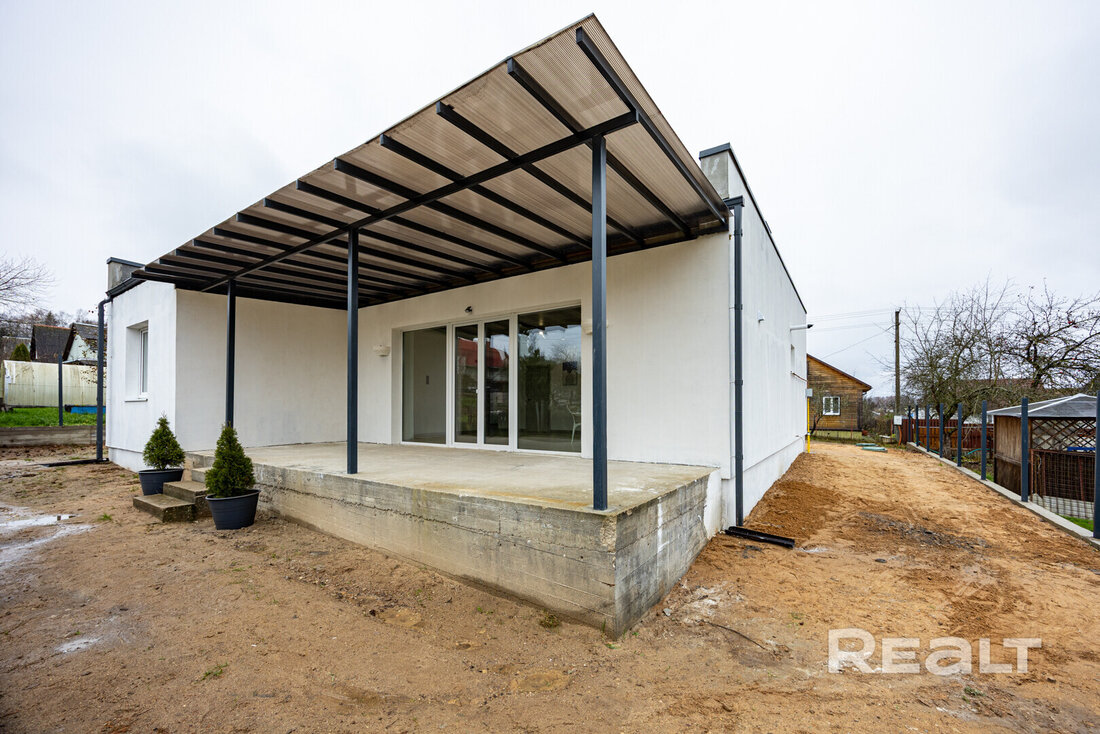 Возле Минска в Мядельском направлении продается современный дом с готовым интерьером, инженерным оборудованием и новой мебелью. В нем 3 комнаты и гостиная, 2 санузла, терраса — чем не пример идеального дома? Цена адекватная — стоит как минская трешка. Но есть и небольшой нюанс: находится он на территории СТ.