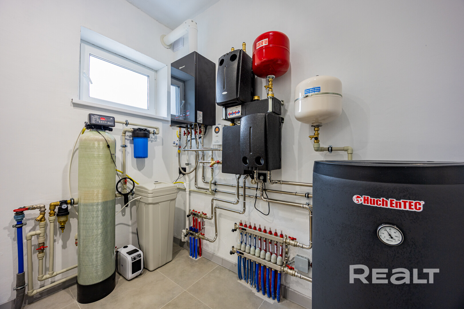 Отопление газовое (конденсационный одноконтурный котел с бойлером косвенного нагрева, теплые полы в зоне плитки, 2 отдельных термостата).