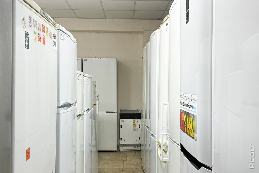 Всего в сети уцененной бытовой техники Btbu.by сейчас работает три магазина. Самый новый открылся осенью прошлого года на Ванева окло станции метро «Тракторный завод». Сюда мы и отправились. В ассортименте — довольно много крупной бытовой техники — холодильники, стиральные машины, посудомойки и телевизоры. Рассказываем подробнее, что и за сколько можно купить.