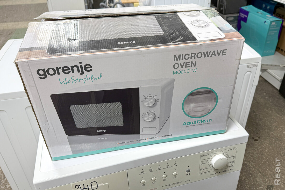 Микроволновок в ассортименте пару штук. Интересный вариант — новая модель Gorenje за 180 рублей. В магазинах стоимость на нее стартует от 200 рублей, но доходит до 600 с лишним.