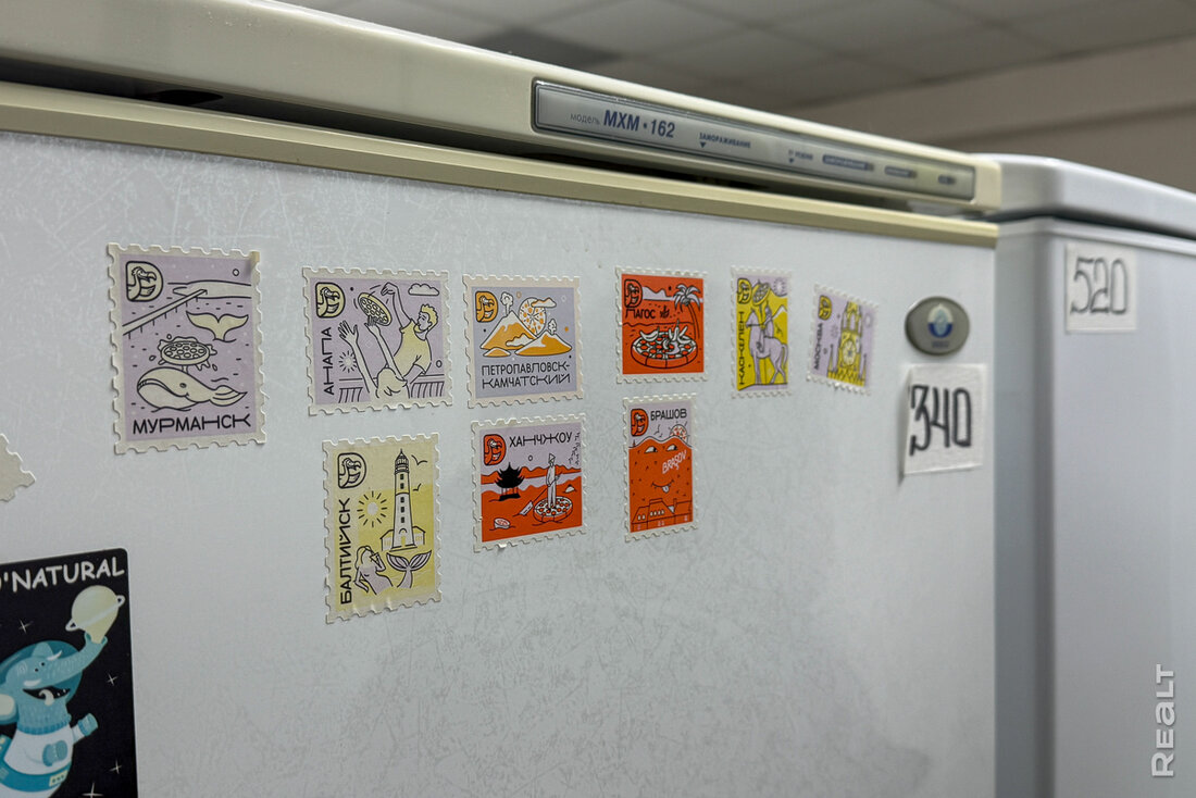 Кстати, что еще интересно в этом магазине, так это рассматривать наклейки на дверцах некоторых из холодильников. По ним тоже можно отследить время, когда была куплена техника и чем интересовались ее первые хозяева.