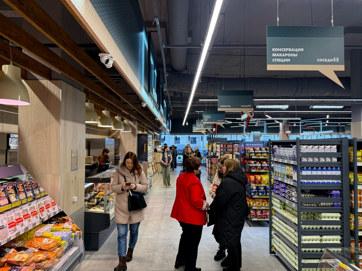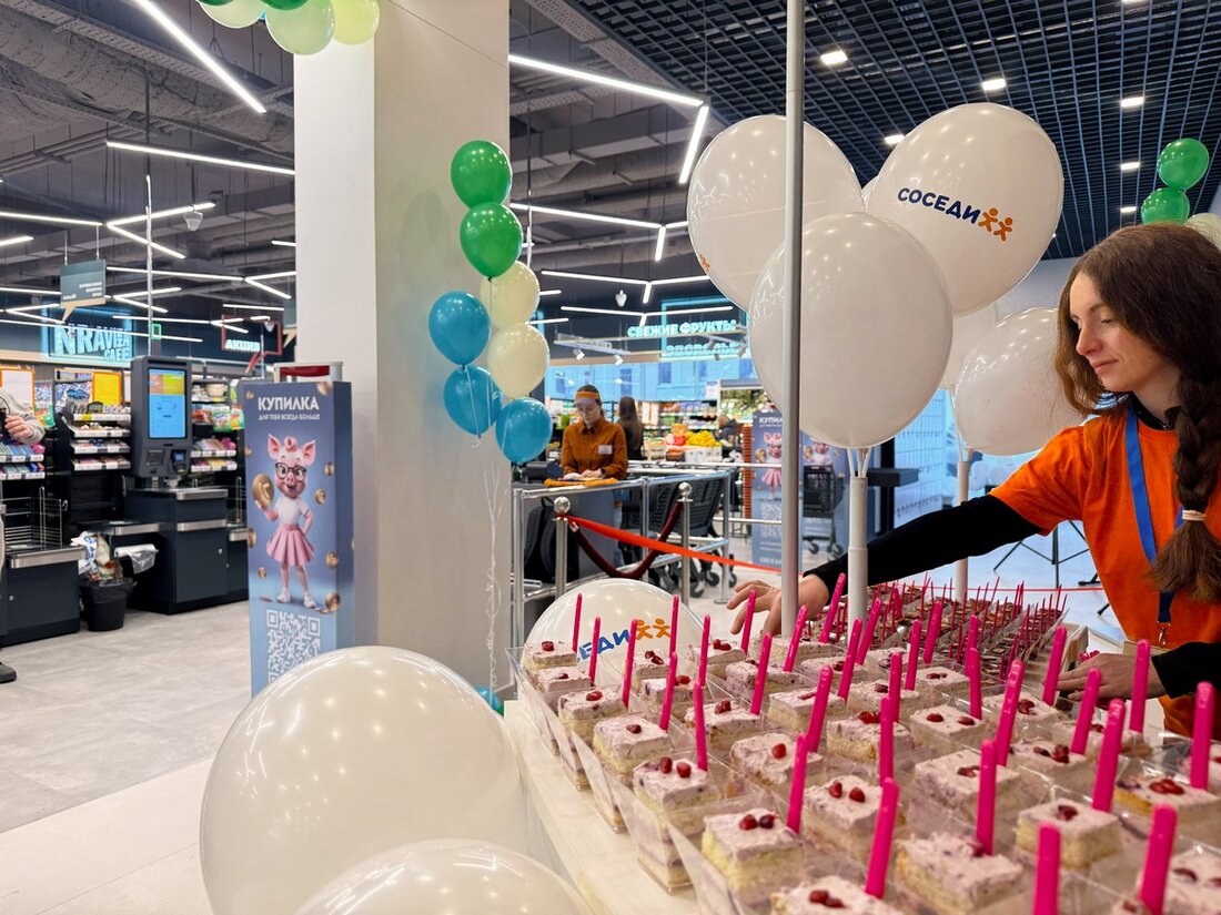 Сегодня в квартале «Северный Берег» состоялось открытие нового супермаркета сети магазинов «Соседи». Магазин заработал по адресу — улица В. Цвирко, 71. В торговой точке площадью 600 квадратов применили новый формат Nravizza Café и открыли большое количество касс самообслуживания.