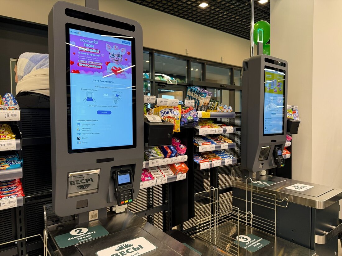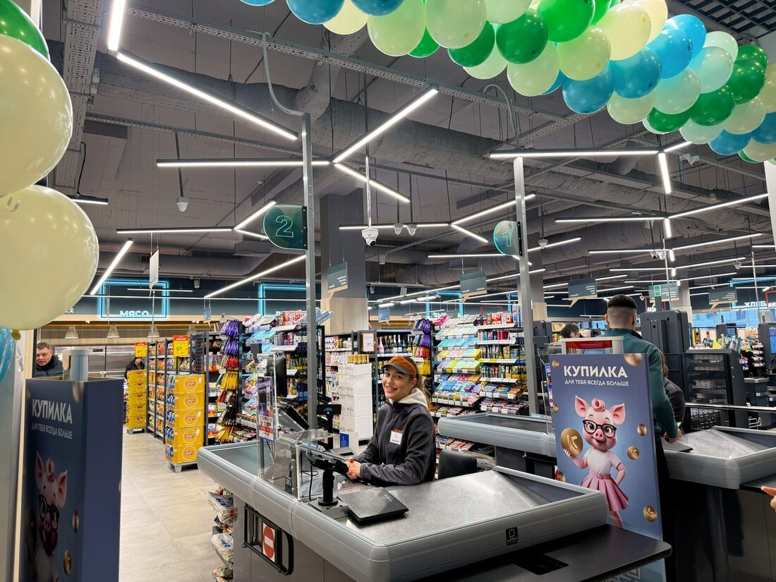 Впервые в супермаркете подобного формата количество касс самообслуживания значительное превышает число традиционных касс. Данное решение обусловлено позитивным опытом использования КСО, которые позволяют принимать оплату как наличными, так и банковскими картами, сократить время обслуживания и минимизировать очереди.