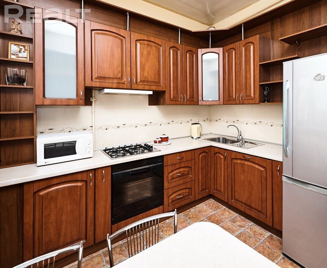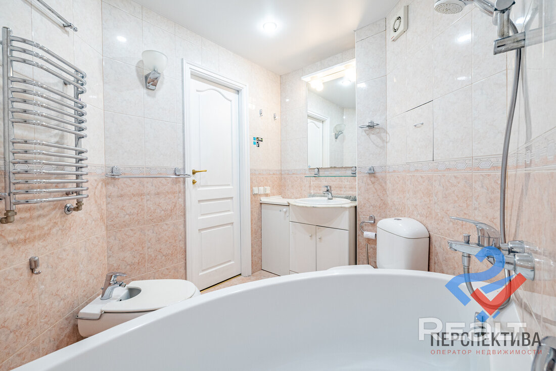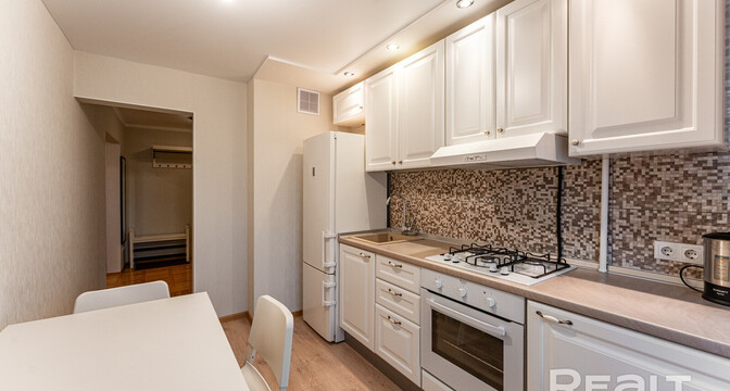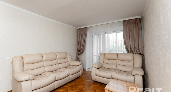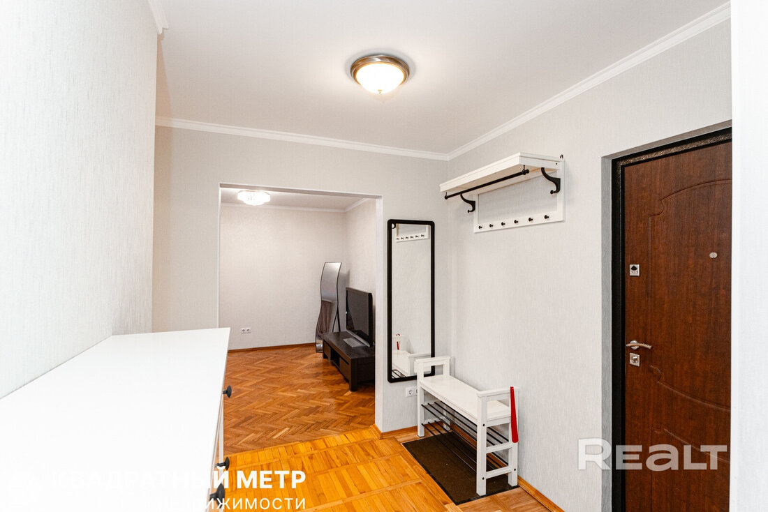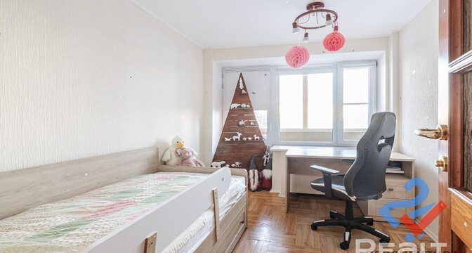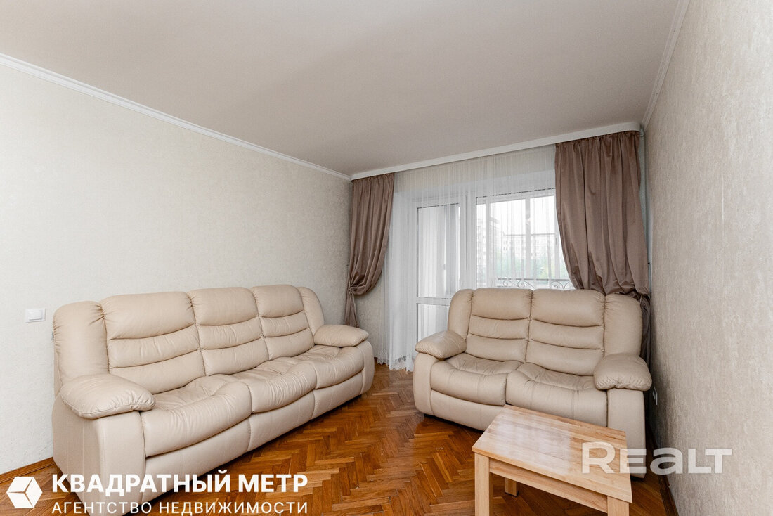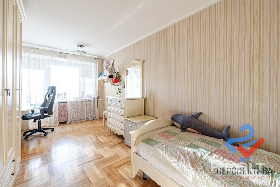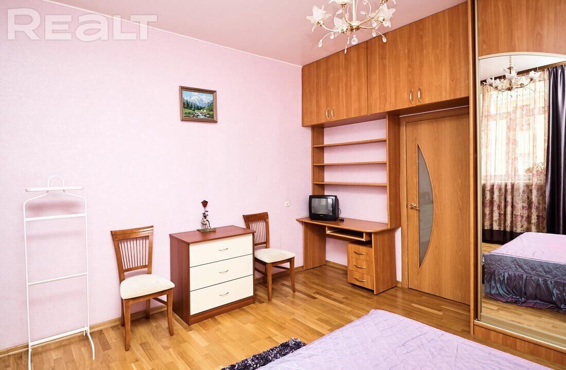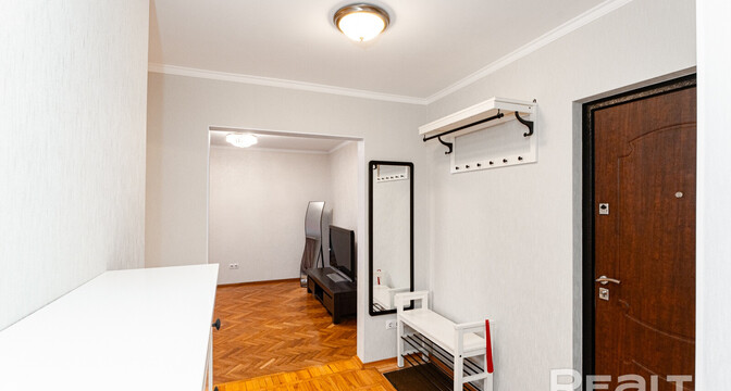 Самая дорогая квартира выставляется по адресу Максима Танка, 10. Это пятикомнатная квартира площадью 104,9 м² находится на третьем этаже. Кухня и гостиная тут объединены. Остальные комнаты — три детские и одна хозяйская спальня. В жилых комнатах на полу лежит паркет, а санузлы облицованы плиткой.