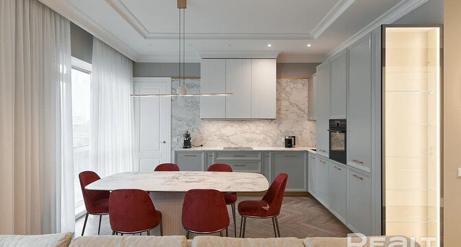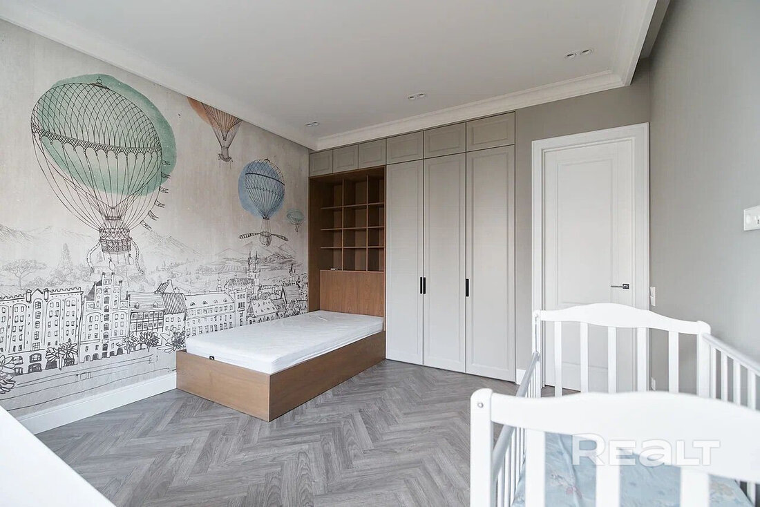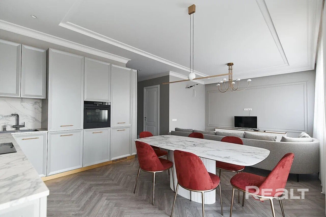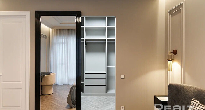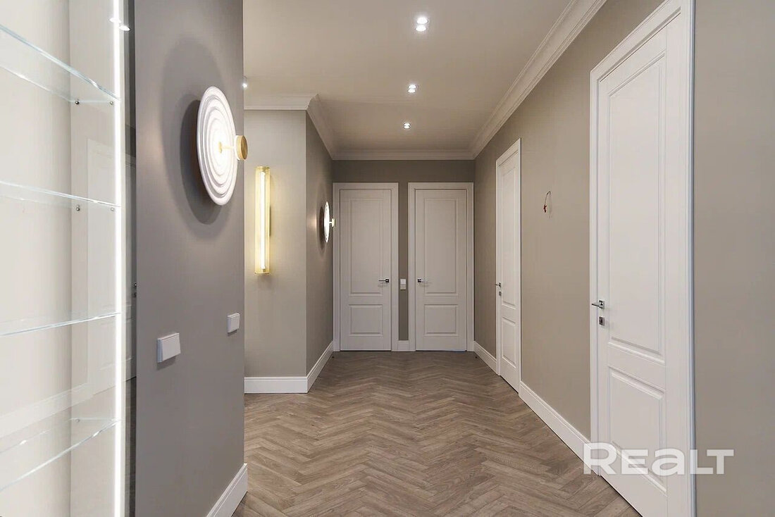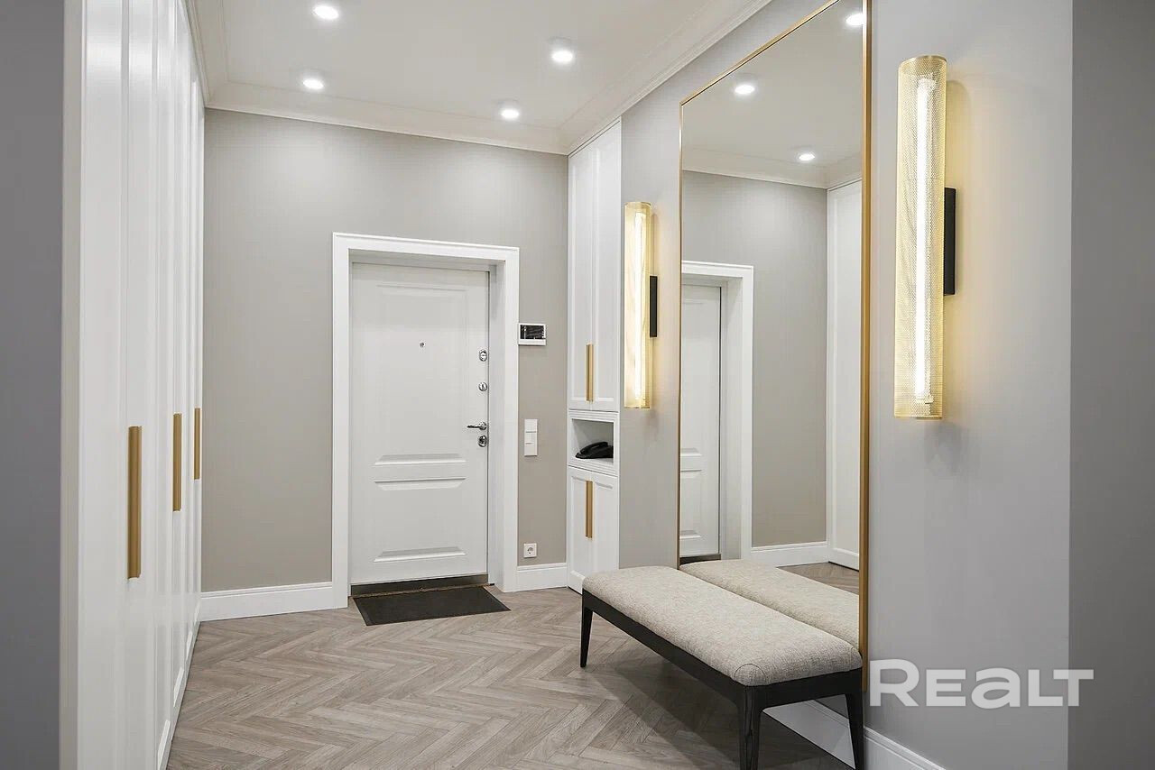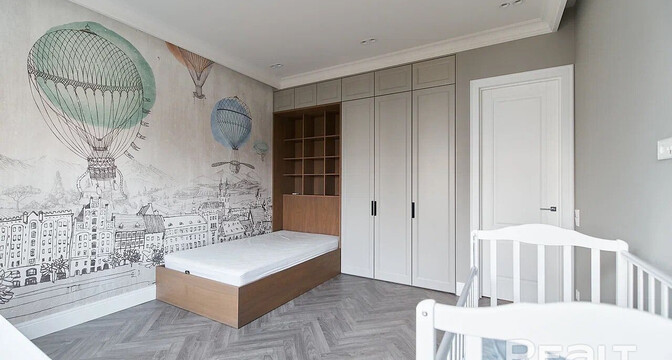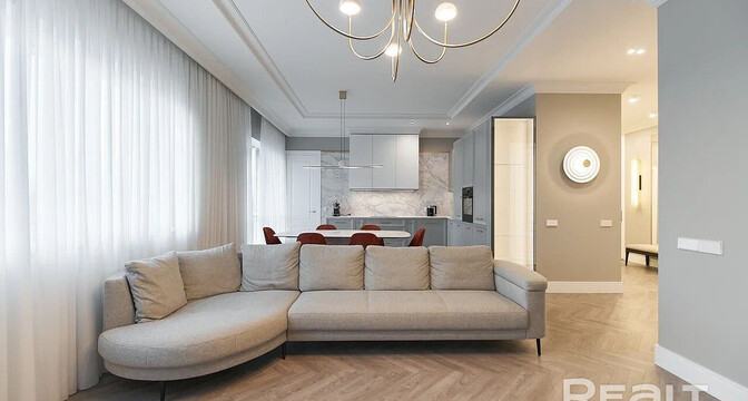 ЖК «Престижино» от «Трайпла» расположился недалеко от первого кольца Минска и Комаровского рынка. Он состоит из четырех девятиэтажных столбиков и двух восьмиэтажек в три и четыре подъезда. Комплекс уникальный. Застройщик один из первых в городе предложил дворы без машин, огороженную территорию с постом охраны, парковки, собственные кладовые, двор с детскими площадками, пешеходными дорожками и даже фонтаном. Все это там есть. Нашли в базе Realt квартиру со стильным ремонтом, которая подойдет семье с детьми. Показываем ее.