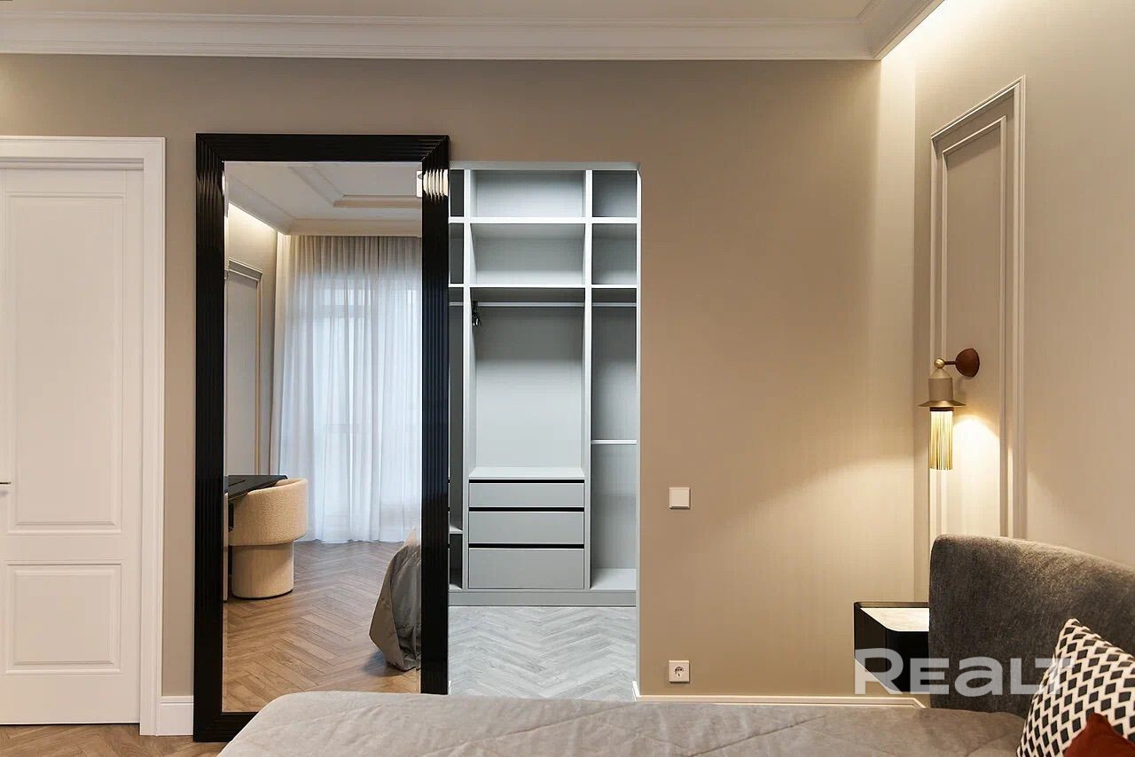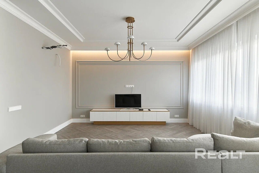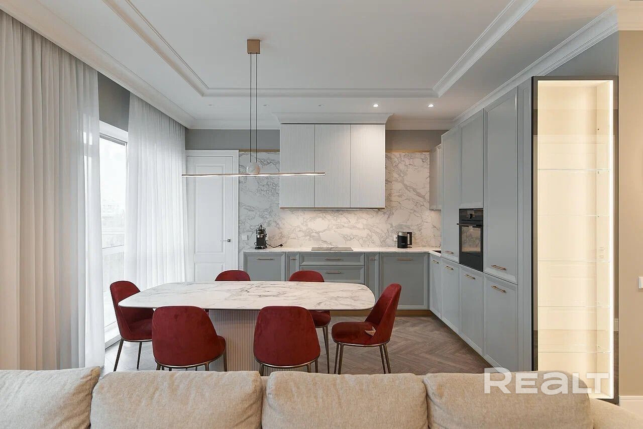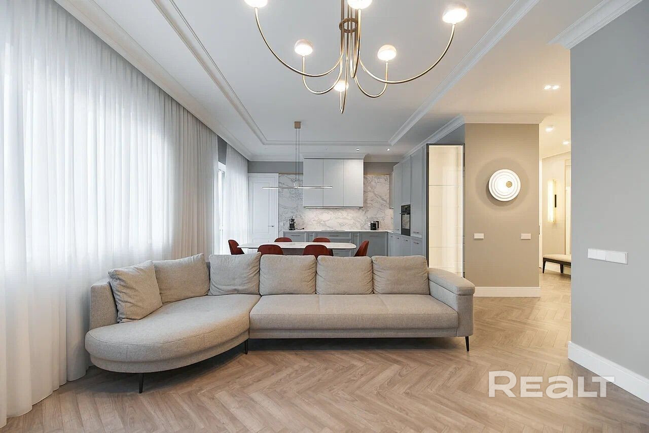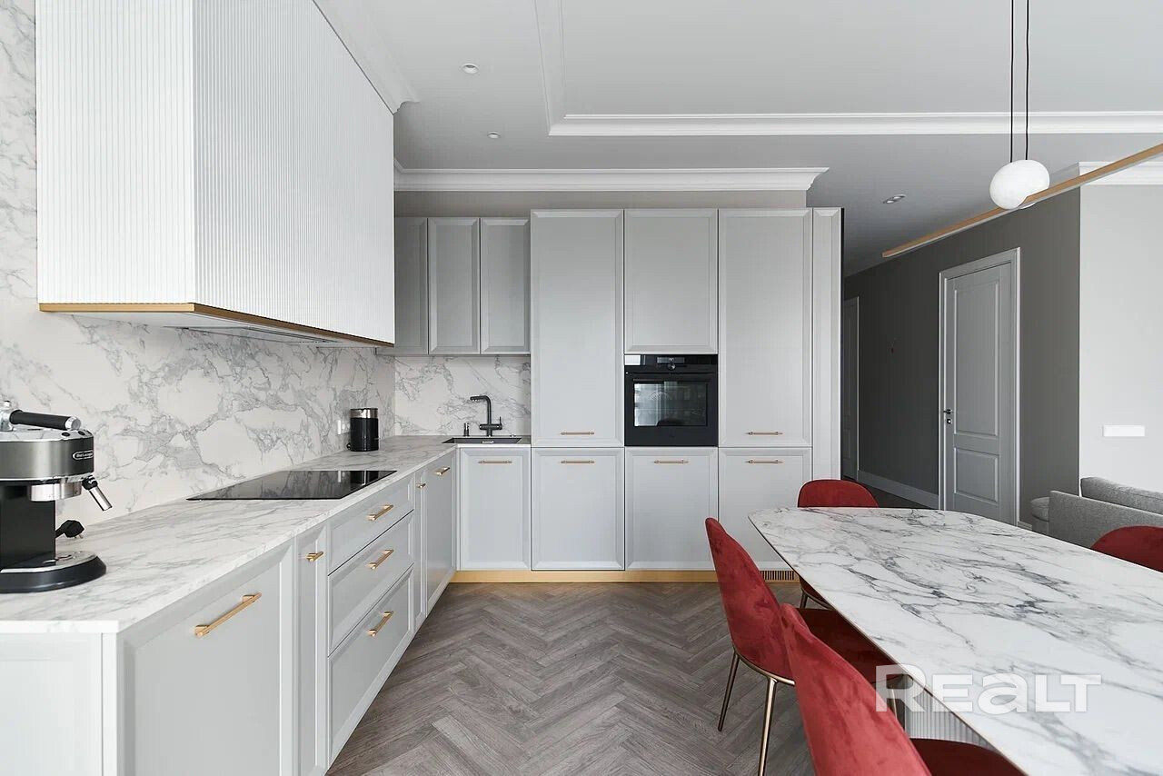 ЖК «Престижино» от «Трайпла» расположился недалеко от первого кольца Минска и Комаровского рынка. Он состоит из четырех девятиэтажных столбиков и двух восьмиэтажек в три и четыре подъезда. Комплекс уникальный. Застройщик один из первых в городе предложил дворы без машин, огороженную территорию с постом охраны, парковки, собственные кладовые, двор с детскими площадками, пешеходными дорожками и даже фонтаном. Все это там есть. Нашли в базе Realt квартиру со стильным ремонтом, которая подойдет семье с детьми. Показываем ее.