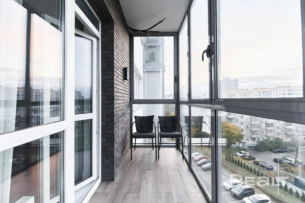 Застеклены в пол и два балкона, которые смотрят на разные стороны (из кухни и спальни).