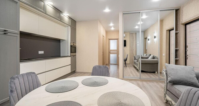 Стоимость квартиры — 170 тысяч долларов (3 041 доллар за квадрат). Минимальный первый взнос для покупки в лизинг — около 48 тысяч долларов. В объявлении можно просчитать комфортные условия лизинга.