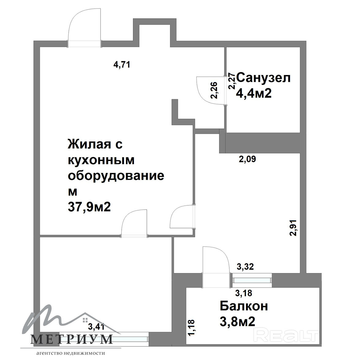 Стоимость квартиры — 122 500 долларов. Метр выходит 2 722 доллара. Для покупки в лизинг на руках надо иметь минимум 35 тысяч долларов. В объявлении — калькулятор для подсчета комфортных условий лизинга.