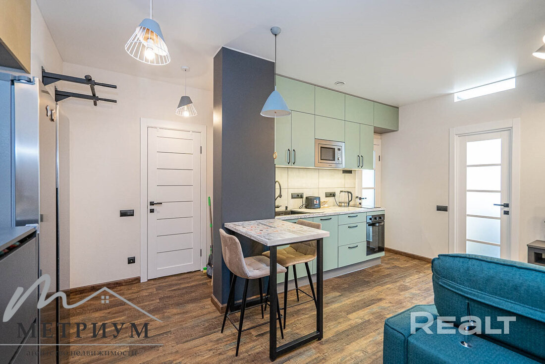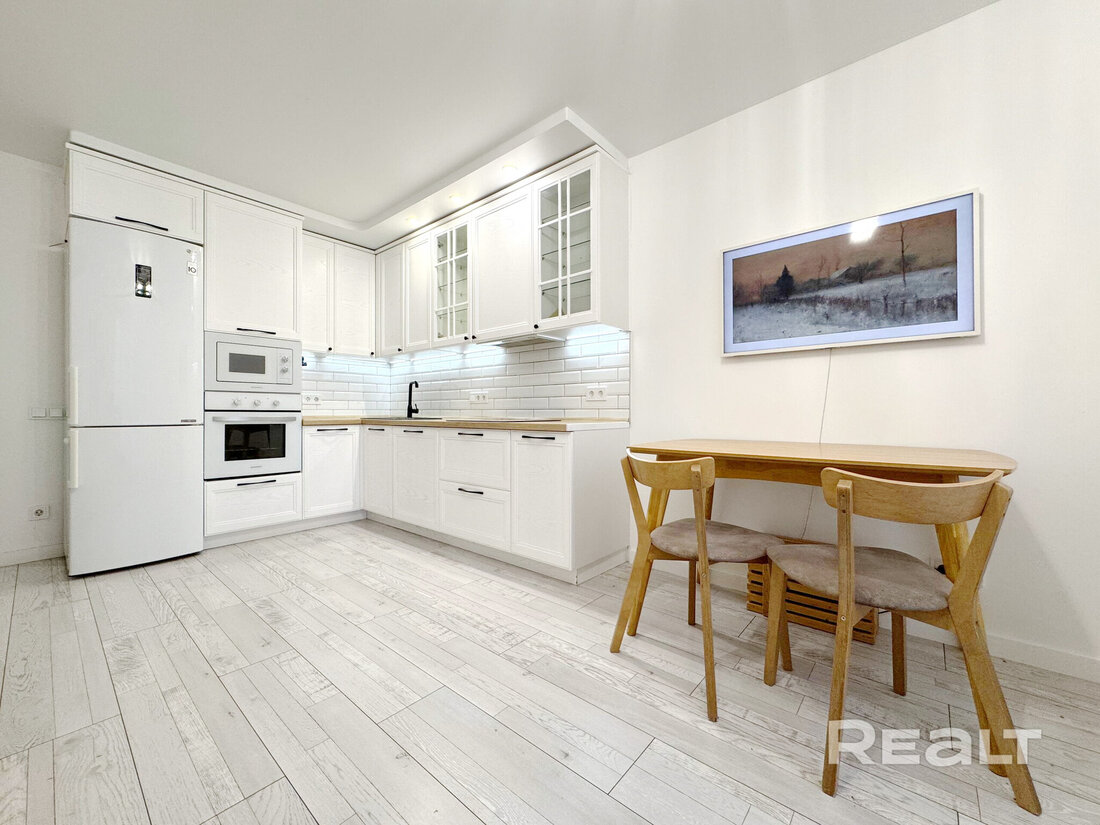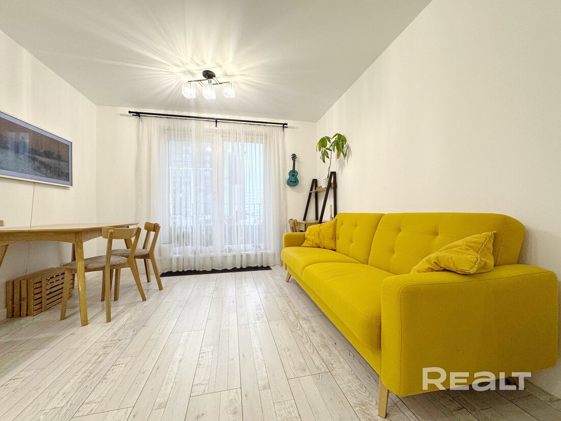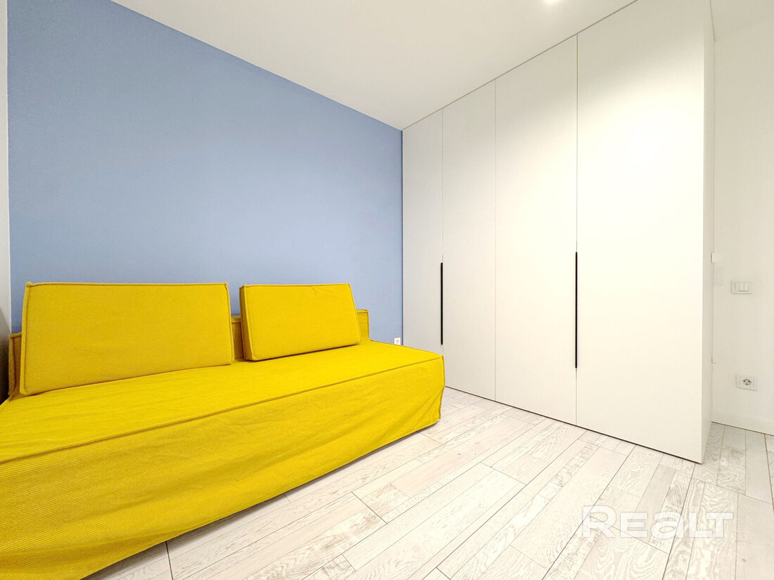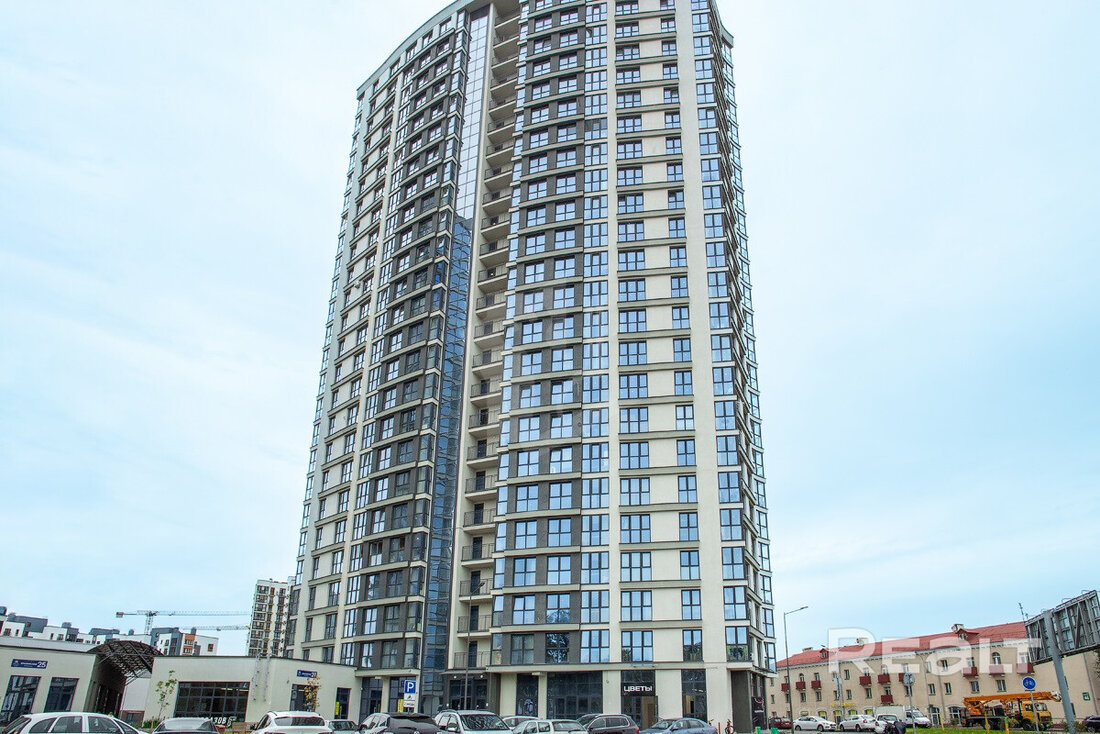 Начинаем нашу подборку с евротрешки в Минск-Мире. Второй этаж 25-этажного дома 2024 года постройки. Это дом «Румба» в квартале Мировых танцев по адресу Брилевская, 27. До станций метро «Аэродромная» и «Ковальская слобода» можно подъехать на транспорте, это чуть меньше двух километров.
