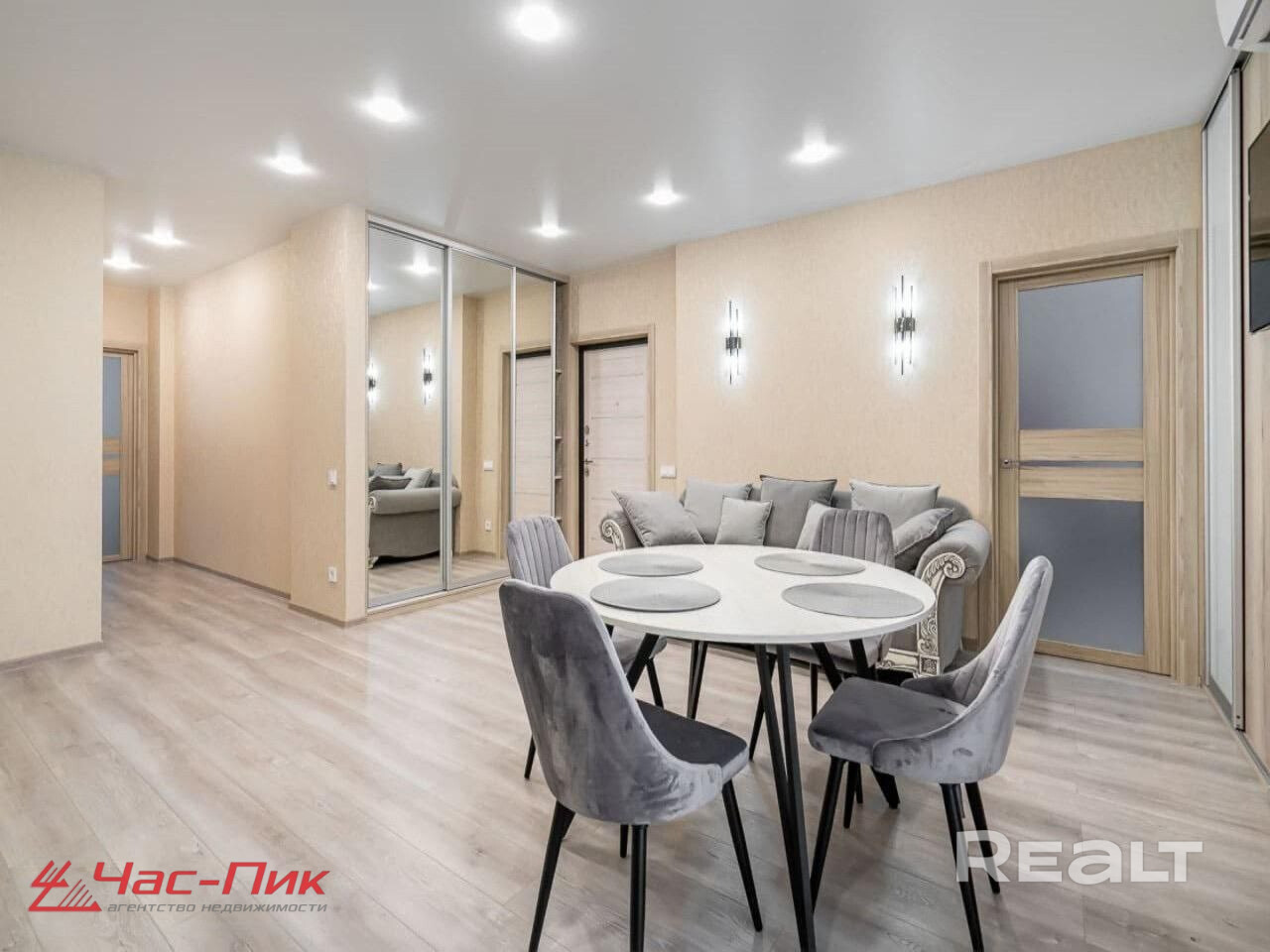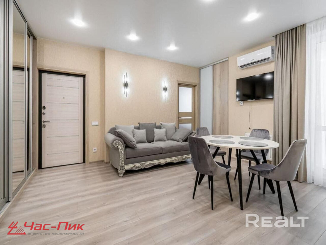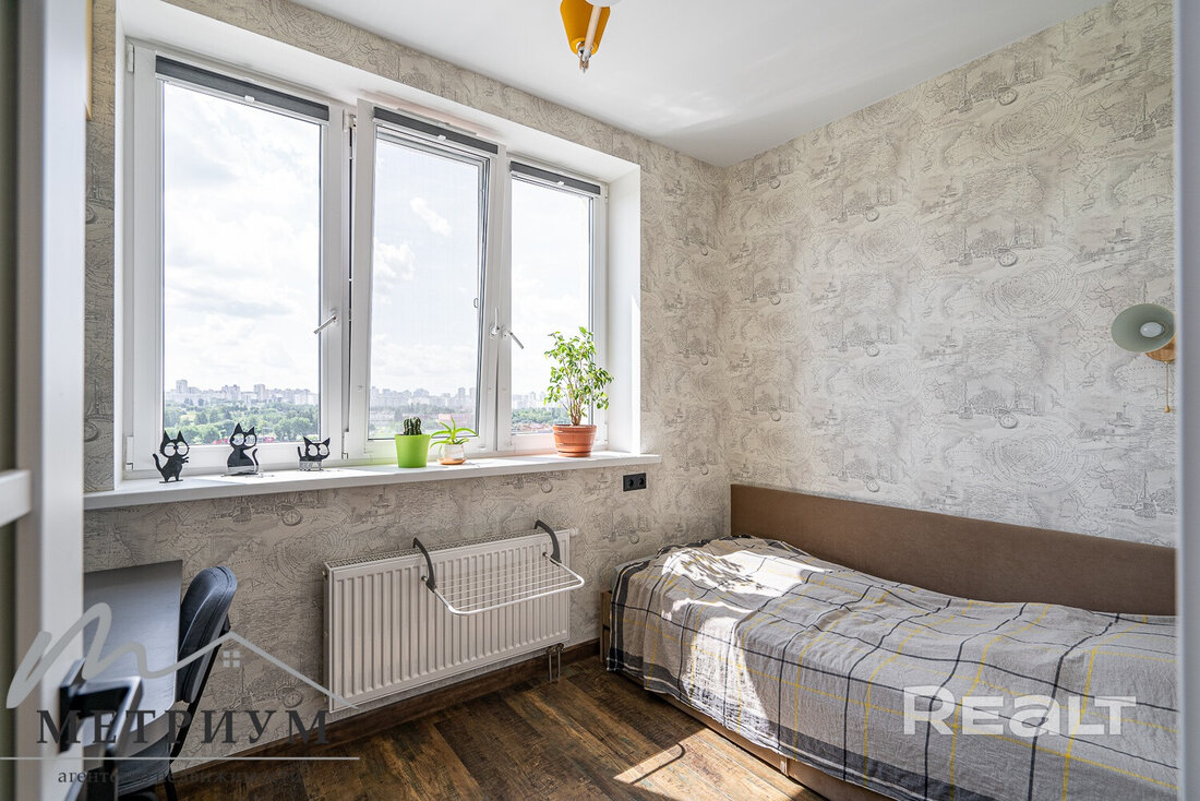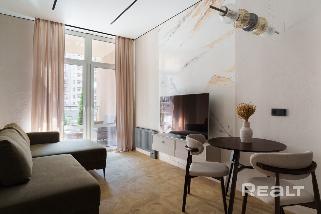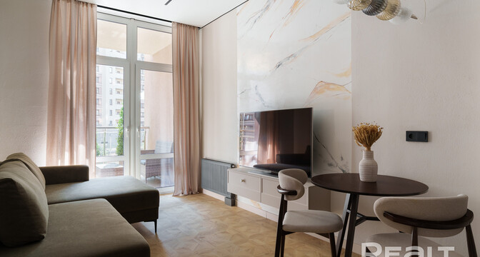 Начинаем нашу подборку с евротрешки в Минск-Мире. Второй этаж 25-этажного дома 2024 года постройки. Это дом «Румба» в квартале Мировых танцев по адресу Брилевская, 27. До станций метро «Аэродромная» и «Ковальская слобода» можно подъехать на транспорте, это чуть меньше двух километров.