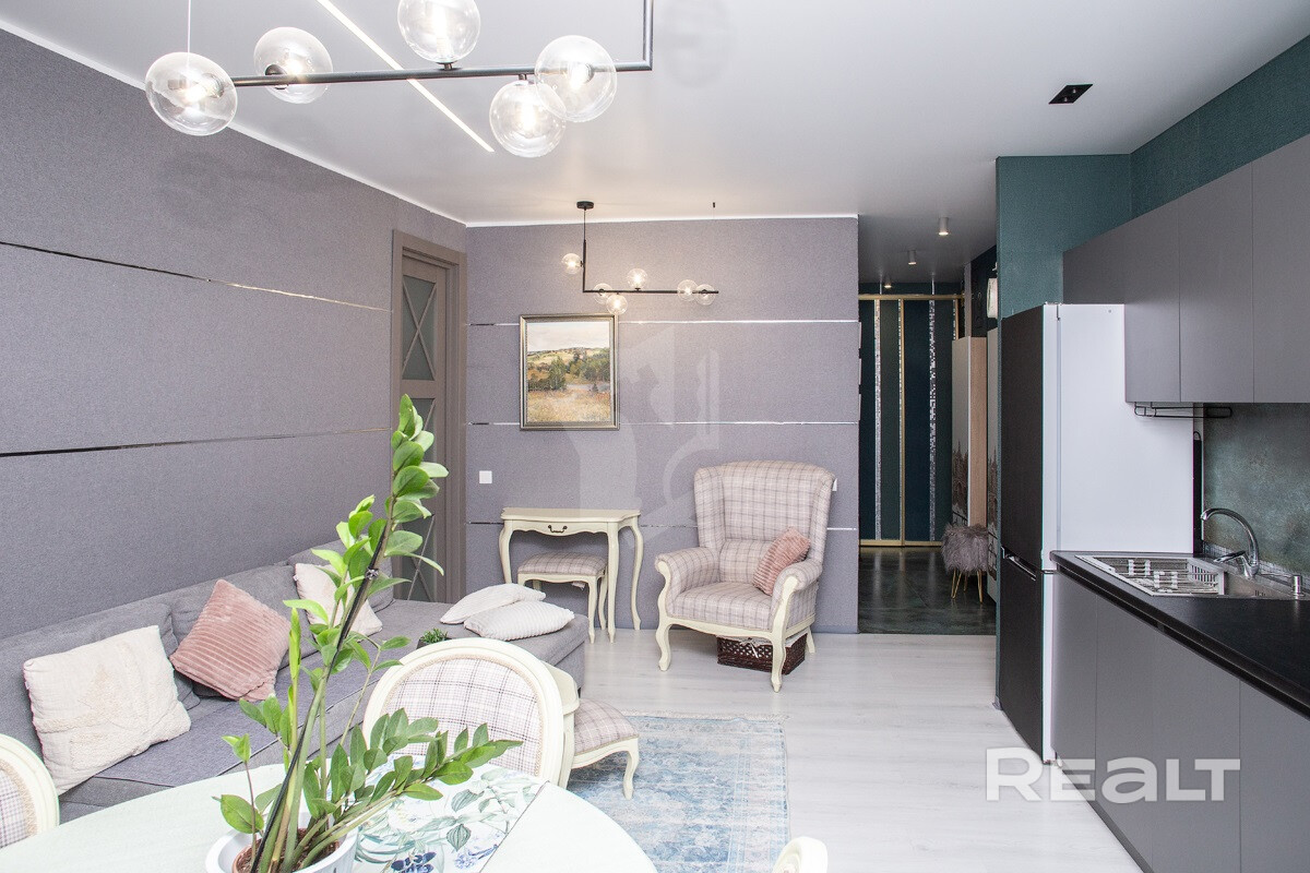 Один из двух самых дорогих вариантов подборки — евротрешка в ЖК «Парк Челюскинцев» на улице Макаенка, 12Д. Это между станциями метро «Парк Челюскинцев» и «Московская». До любо можно дойти меньше чем за 10 минут.