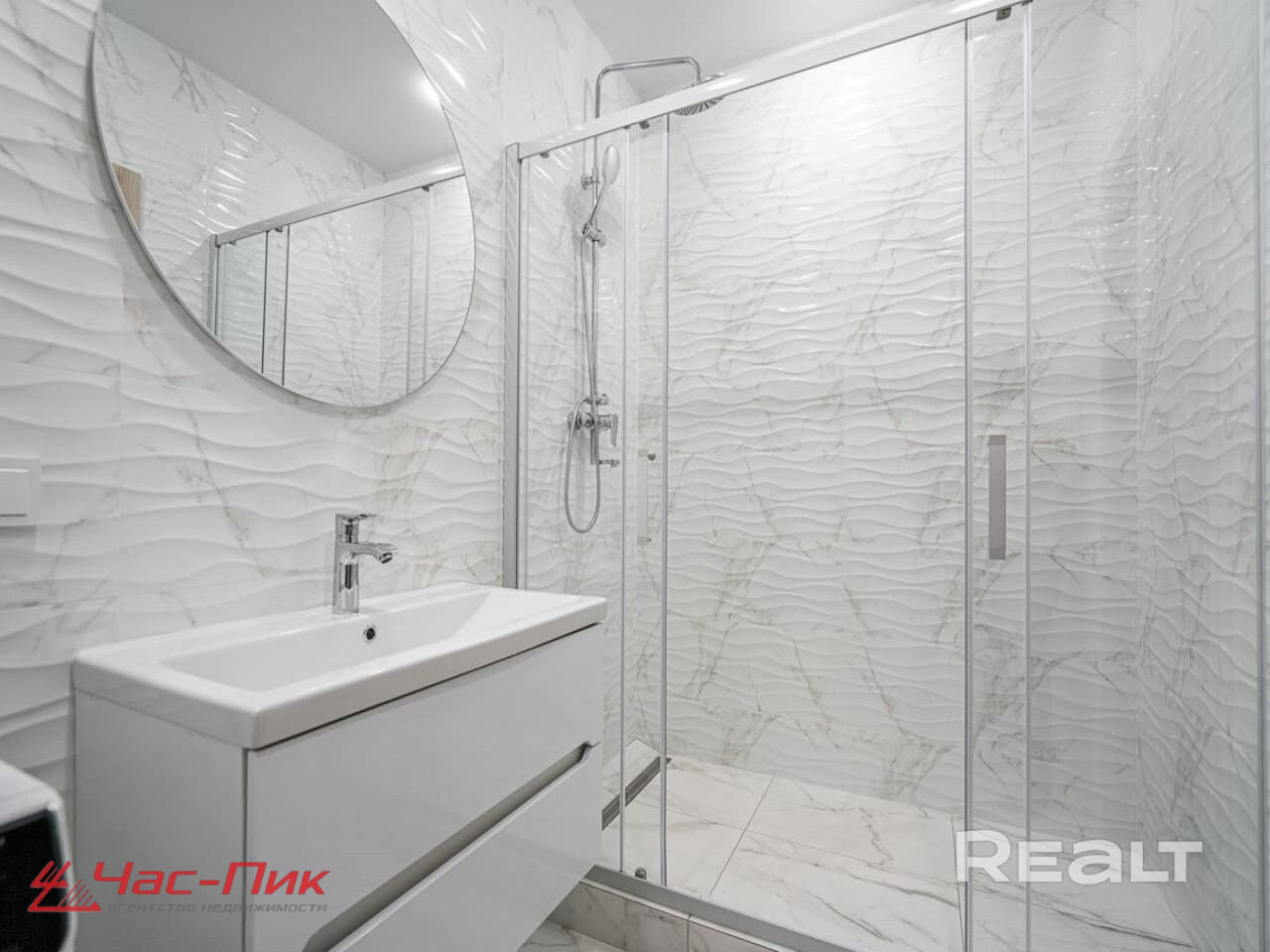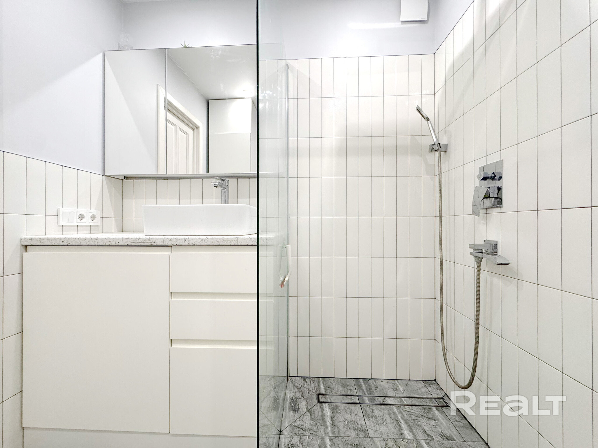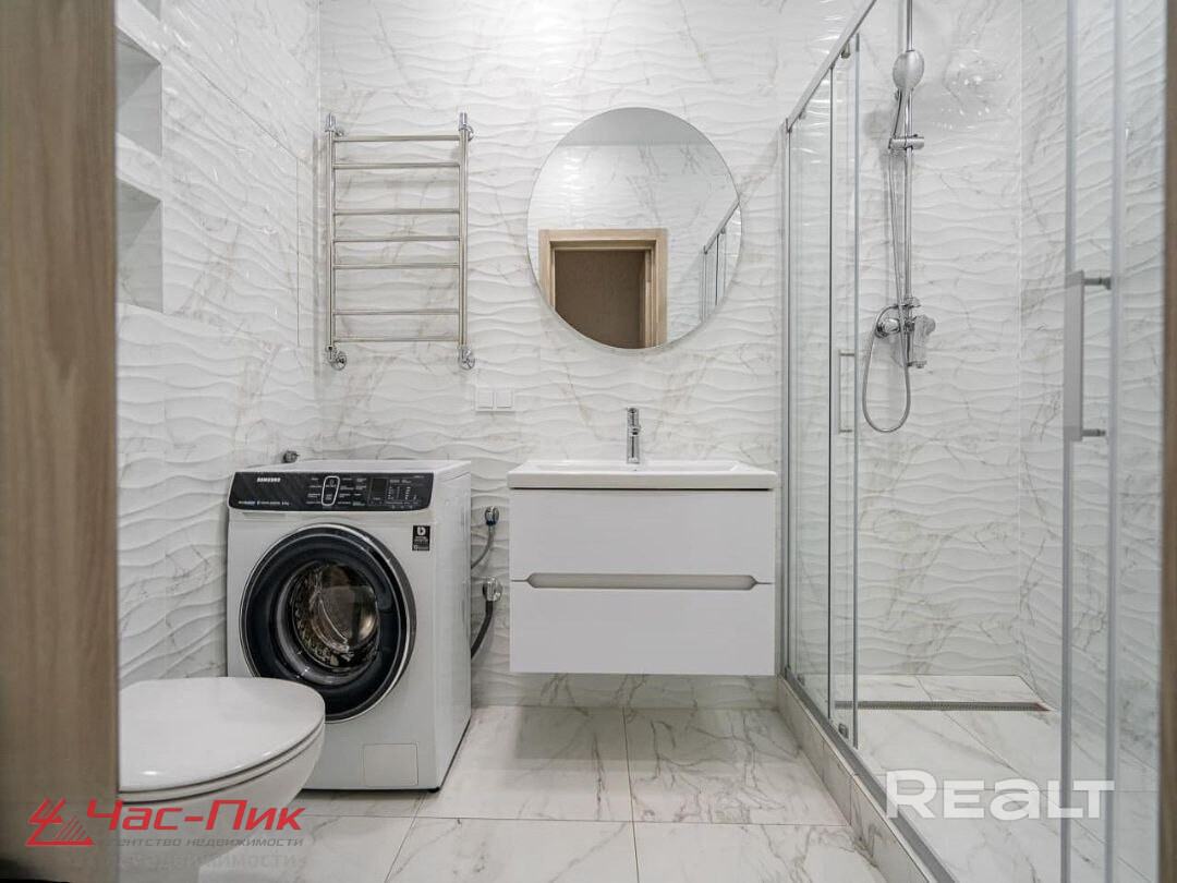 В совмещенном санузле установлена душевая. Стиральная машина спрятана в шкафу в прихожей.