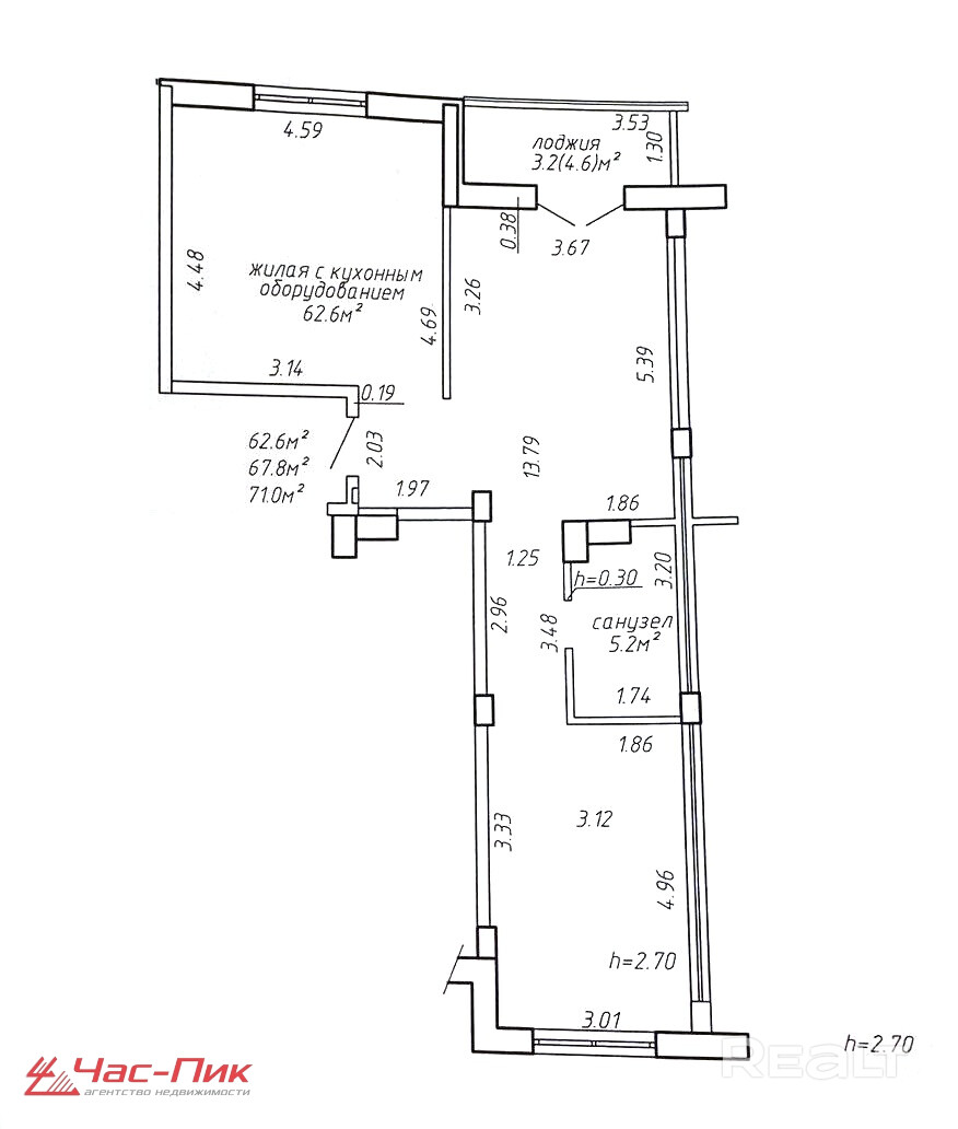 Общая площадь — 71 квадрат.
