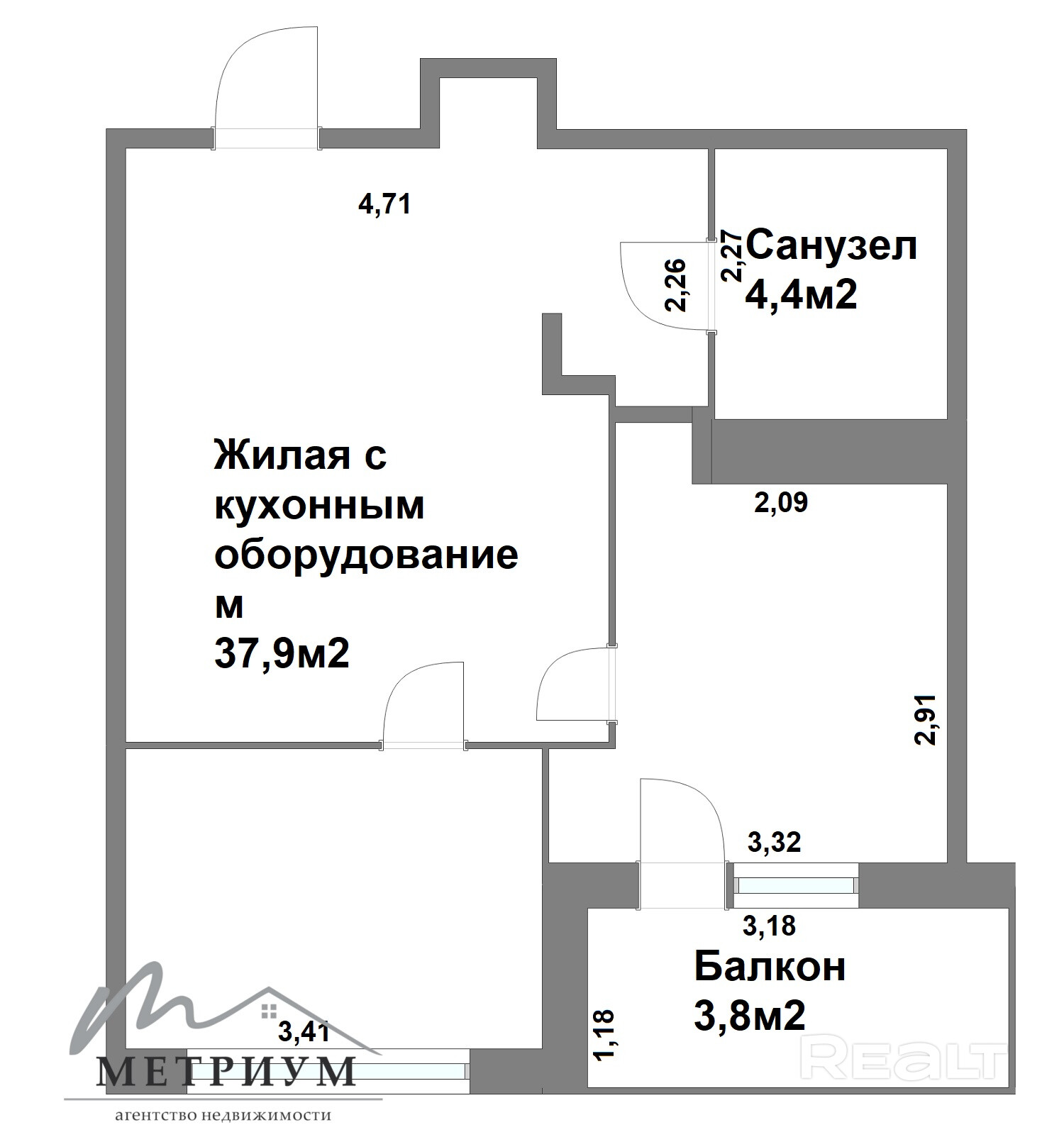 Общая площадь квартиры — 45 квадратов. Вот планировка.