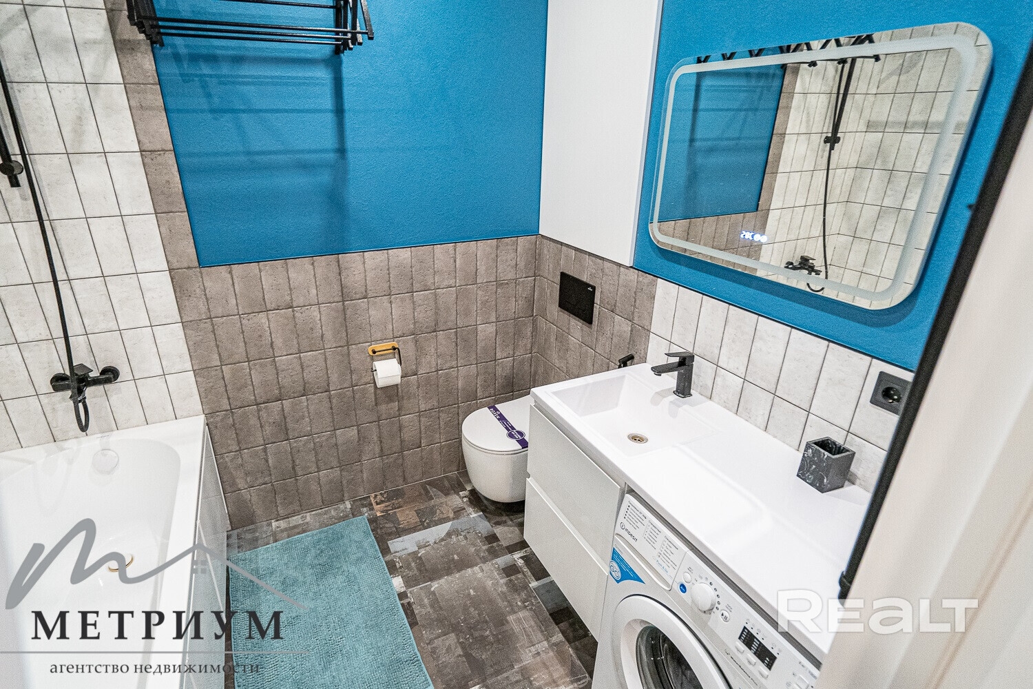 В совмещенном санузле установлена ванна и подключена стиральная машина.