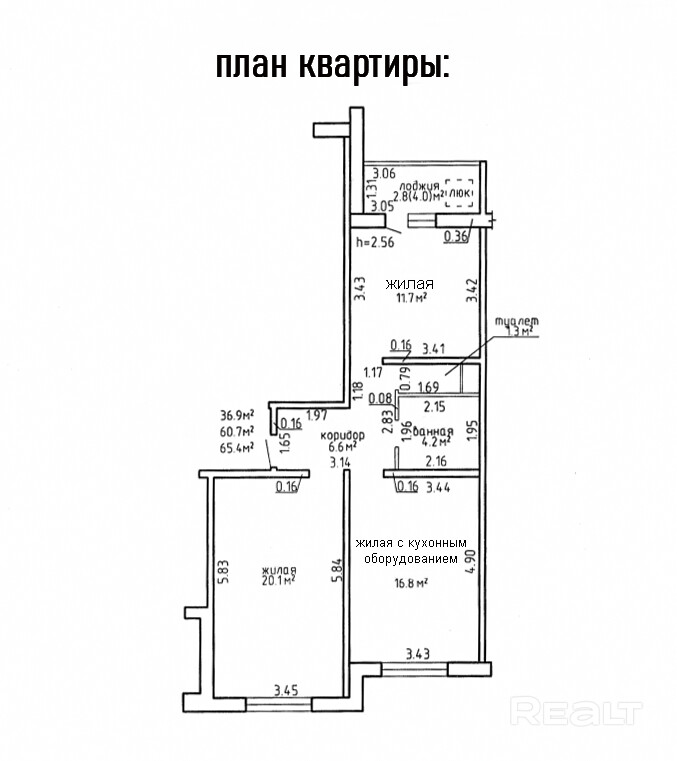 Общая площадь квартиры — 65 квадратов, жилая — 37.