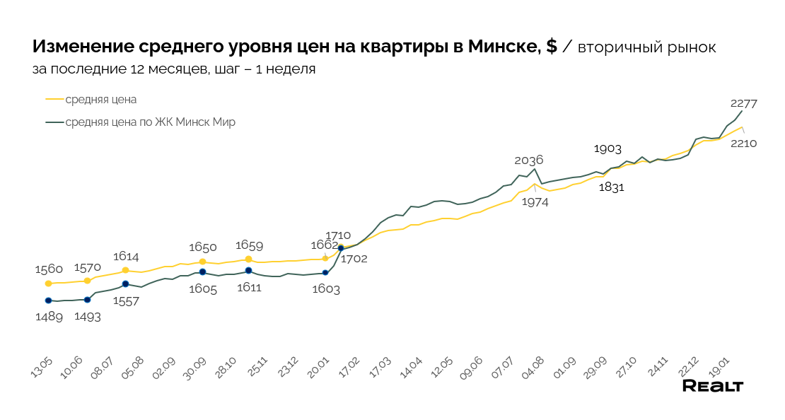 продолжают расти, и особенно в «Минск Мире». Сказывается просевший доллар и маленькое количество квартир в продаже — все это дает потенциал для роста цен.