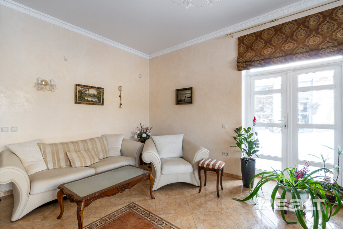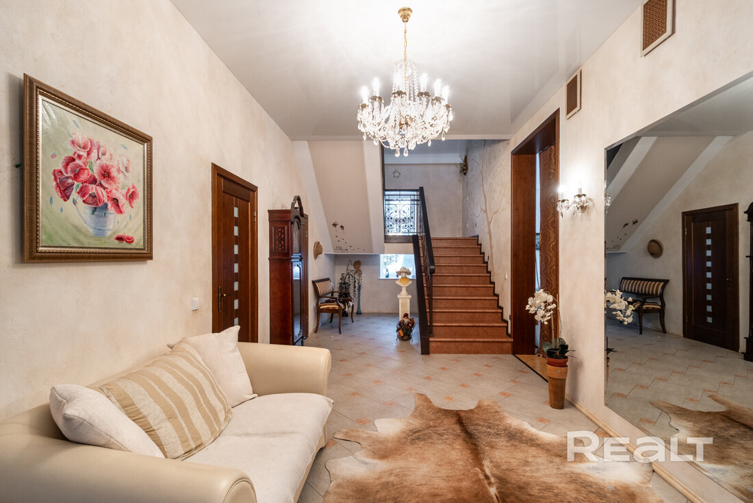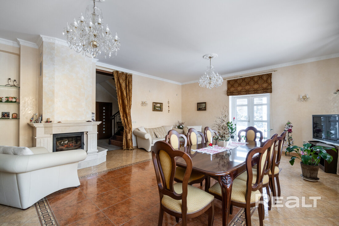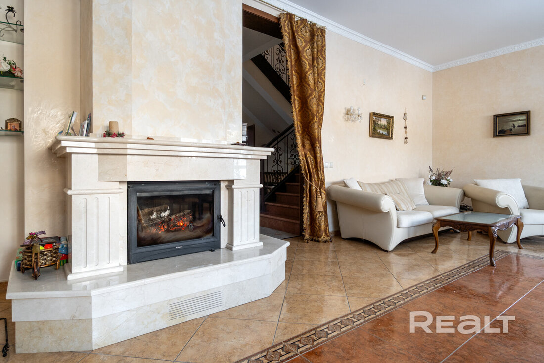 Все необходимые для комфортной жизни удобства находятся внутри дома. Отопление — на газу плюс теплые полы, вода — центральная и скважина с многоступенчатой системой очистки, канализация — местная. Отмечается, что зимой в коттедже очень тепло, а летом не жарко. В дом проведено оптоволокно («Белтелеком»), установлена охранная система.
