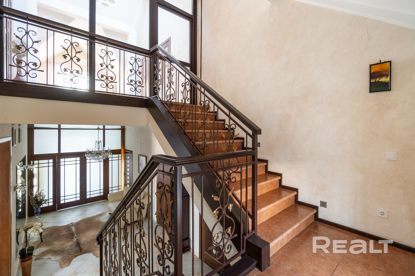 На втором этаже, куда ведет шикарная лестница, находится еще одна отдельная кухня, несколько спален, ванная комната и отдельный туалет. Это позволяет организовать полностью автономный второй уровень проживания.