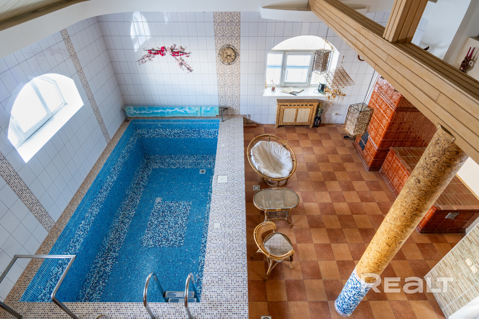 Фишка участка — отдельный SPA-комплекс. Тут и русская баня на камнях, и турецкий хамам, и бассейн, и зона отдыха. Кстати, SPA-комплекс можно рассматривать как направление для бизнеса. Его можно сдавать в аренду для ретритов и других оздоровительных мероприятий.