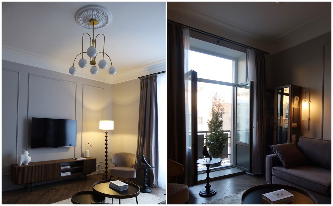 В квартире вот-вот завершили ремонт. После обновления в ней никто не жил. Высокие потолки, открытый балкон позволили воплотить в интерьере французский неоклассический стиль.