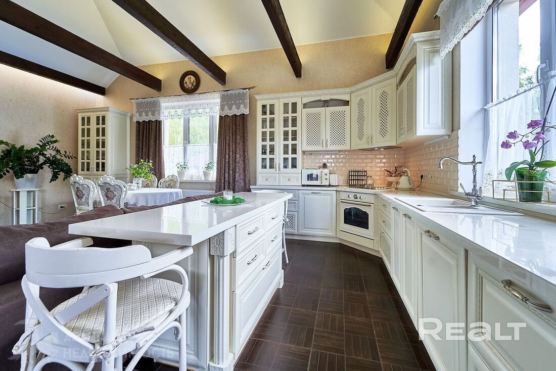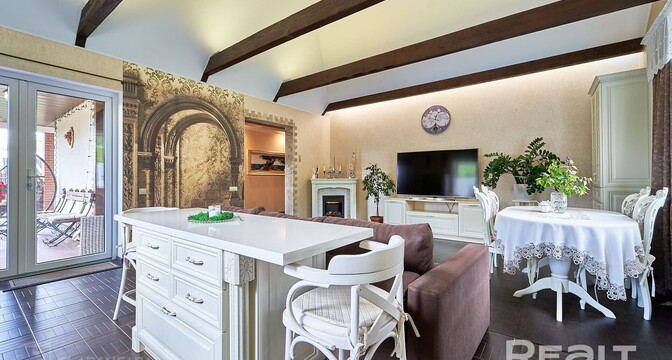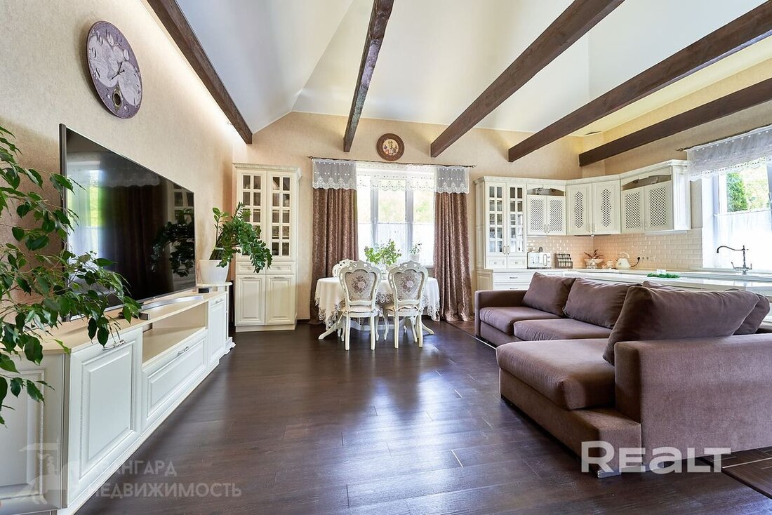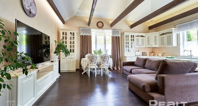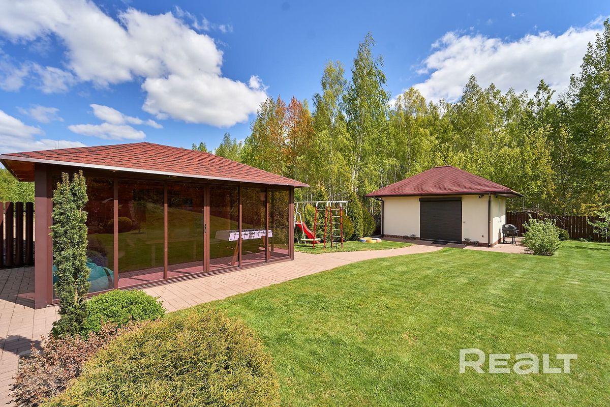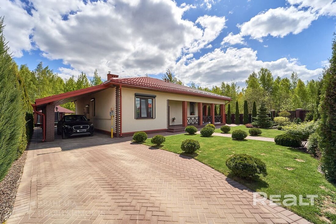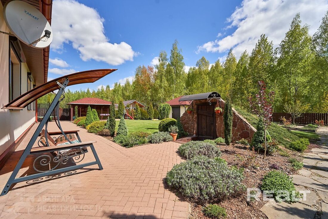 Всего 12 км от Минска, в городском поселке Мачулищи, продается коттедж у березовой рощи. Он подходит для комфортной жизни большой семьи: три спальни, гостиная, два санузла, мини-сауна. Причем, заселяться можно сразу: мебель, бытовая техника, инженерное оборудование — все есть. Участок тоже не требует вложений — благоустроен, с ландшафтным дизайном, беседкой и даже винным погребом. И сколько все это стоит?