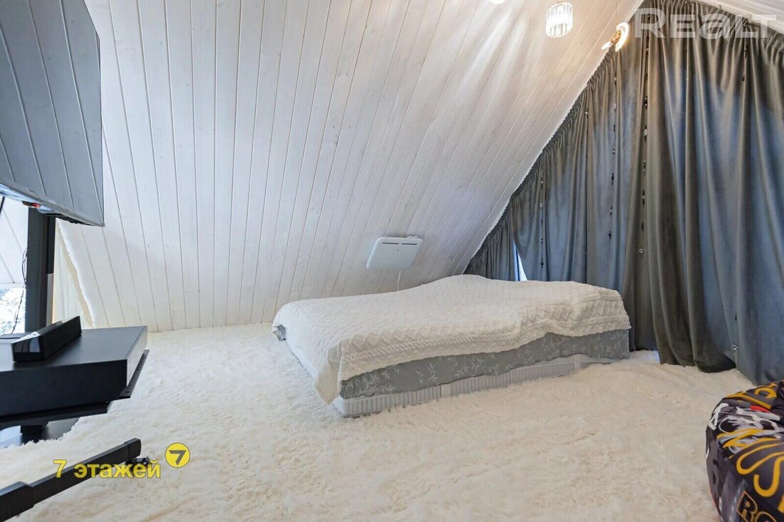 На втором этаже — жилая комната. Барнхаус идет со вторым светом и мансардным окном.