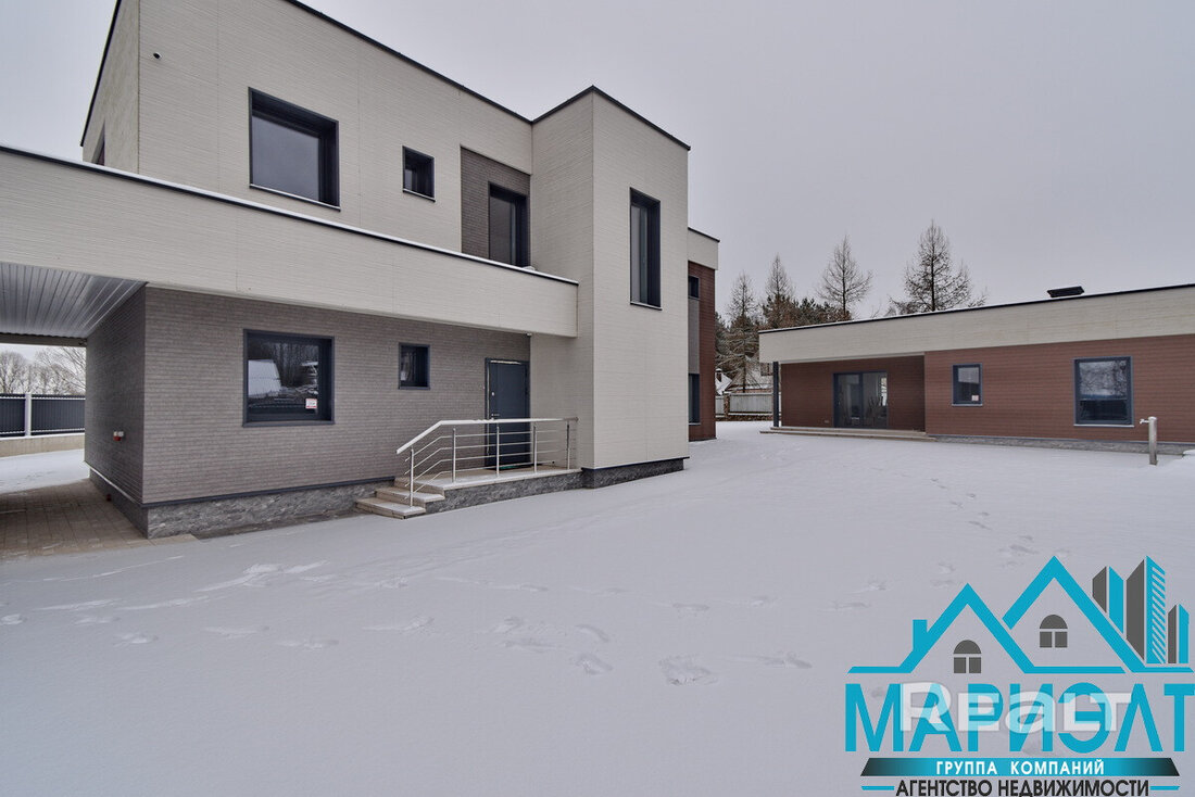Двухуровневый коттедж с плоской крышей был возведен в 2022 году из керамзитобетонных блоков. Отмечается, что фасад дома выполнен из экологически чистых материалов — самоочищающихся панелей от японского производителя Nichiha. За счет эффекта гидрофильности, практически любая грязь (пыль и сажа), оседающая на фасаде дома, смывается обычным дождем и не оставляет грязевых потеков. А благодаря устойчивости к выцветанию и влажности, не восприимчивости низких и повышенных температур, фасад прослужит долгий срок, не теряя своих первоначальных качеств.