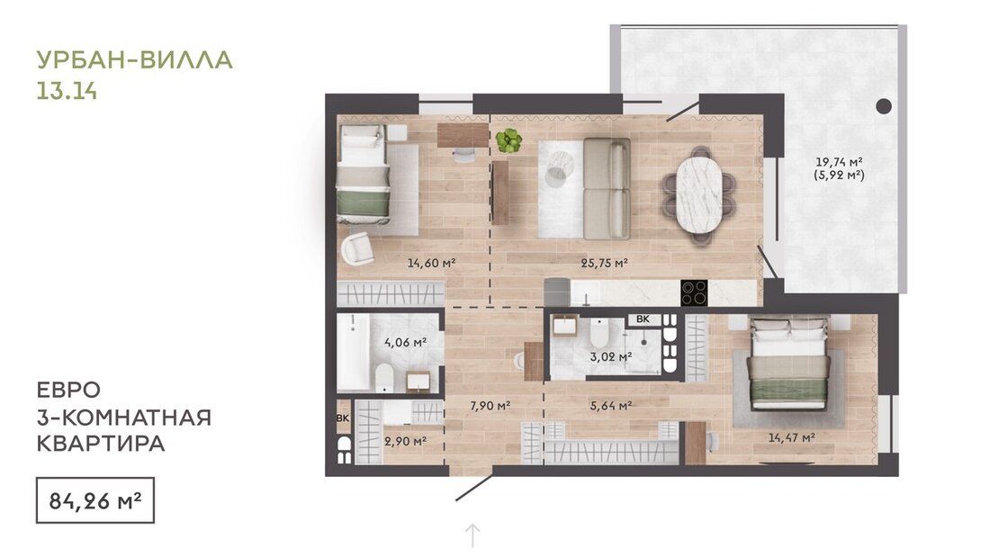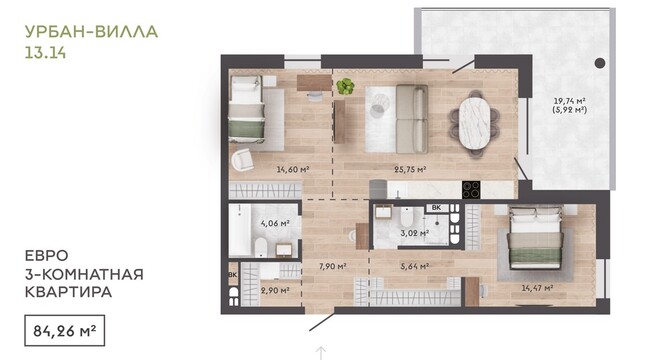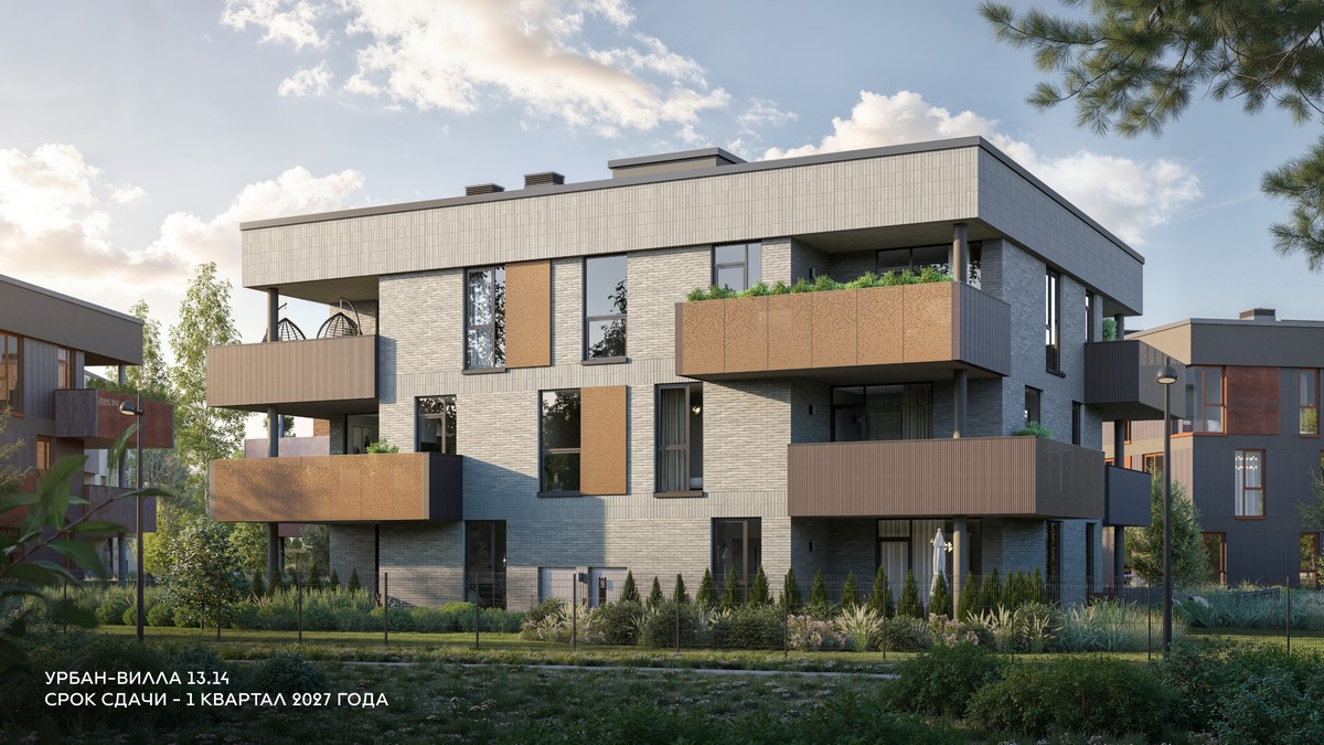 Застройщик позиционирует урбан-виллы как небольшие дома на несколько семей в приватной части комплекса. Это идеальный вариант для тех, кто готов к жизни в большом доме с террасой-участком или просторным балконом, но не хочет переезжать в таунхаус или заботиться о содержании собственного коттеджа.